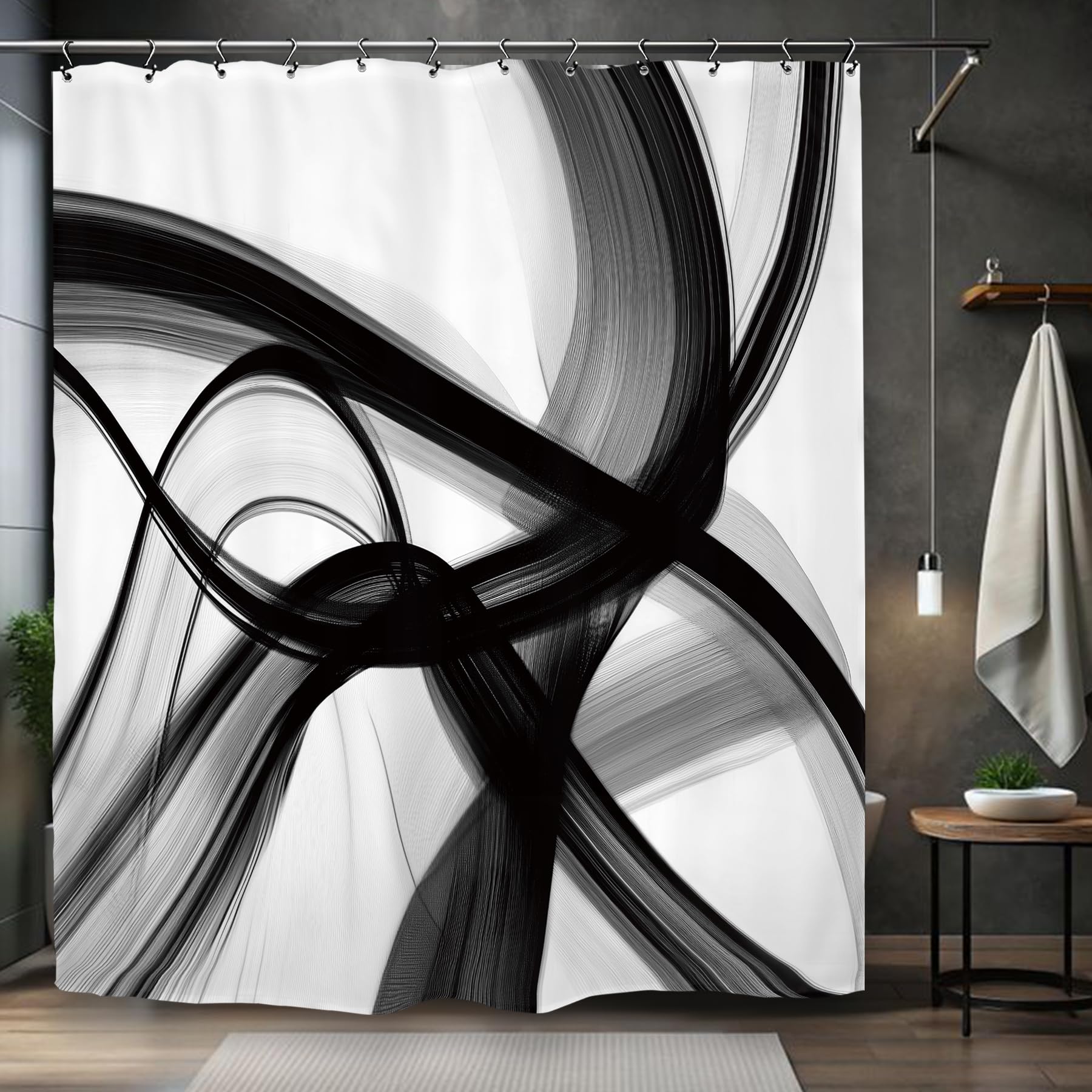 Kalmico Abstract Modern Black White Shower Curtain 60Wx72L Inch Neutral Minimalist Contemporary Art Simple 3D Bathroom Set Accessories Decor with 12|Home & Garden
