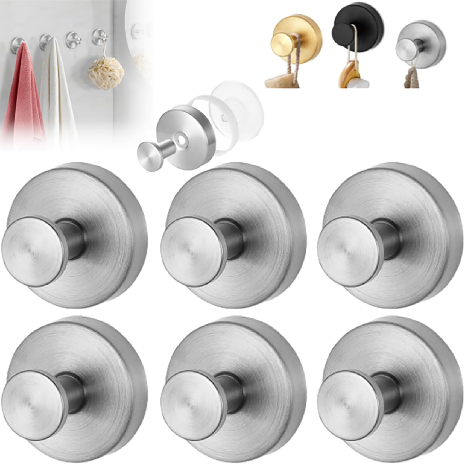 HISKI Suction Cup Hooks, No-Drill Hook Stainless Steel Waterproof Towel Hook for Shower Bathroom Kitchens Hanging Towels Suction Cups Hooks for|Home & Garden