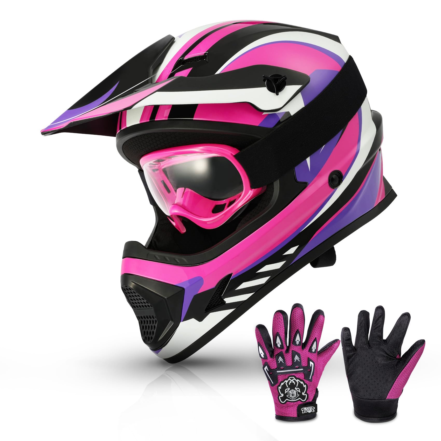 TCMT Dot Youth Kids ATV Motorcycle Helmets Full-Face Kids Helmet with Adjustable Chin Strap for Boys and Girls Kids Dirt Bike BMX Cycling w/Goggles+|Sporting Goods