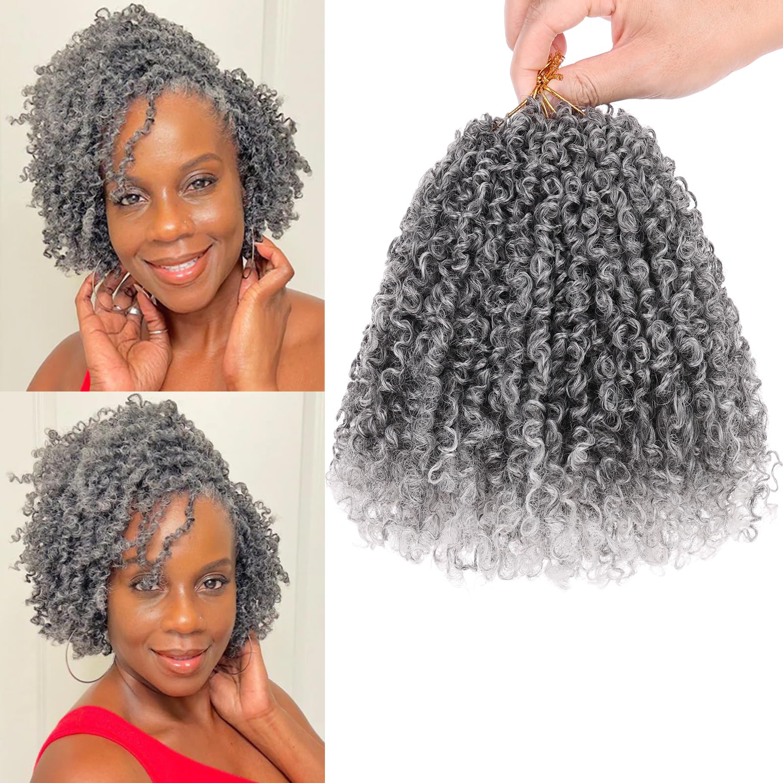 COOKOO 8 Inch Pre-looped Yanky Twist Crochet Hair 8 Packs 30 Strands/PCS Ombre Grey Yanky Twists Hair Spring Twist Crochet Hair with Curls Synthetic|Health & Beauty