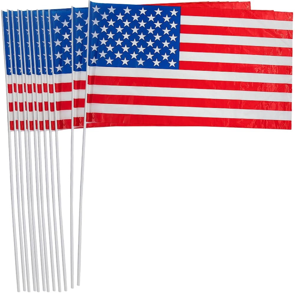 18" x 11" Large Plastic USA American Flags, 12 Pieces, Great for Memorial Day, 4th of July, Veterans Day and any Patriotic Event|Toys
