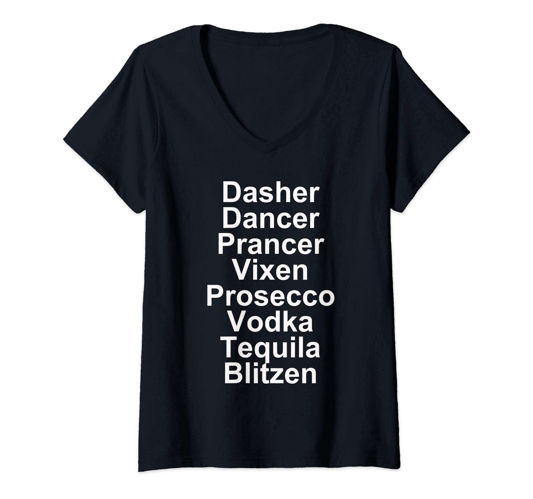 Womens Dasher Dancer Prancer Vixen Vodka Tequila Alcohol List Funny V-Neck T-Shirt|Clothing