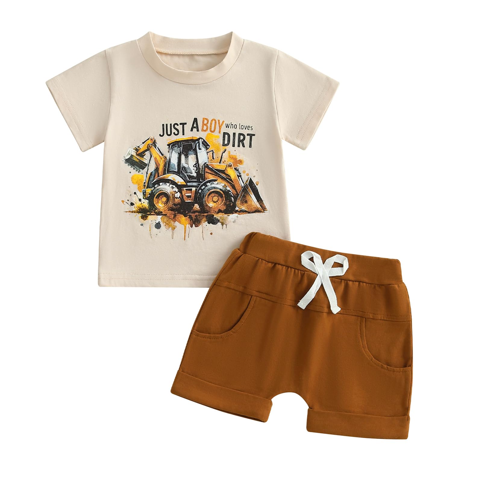 Toddler Baby Boy Clothes Summer Short Sleeve Truck Print T-Shirt Tops Solid Color Shorts Set 2Pcs Casual Outfit|Clothing