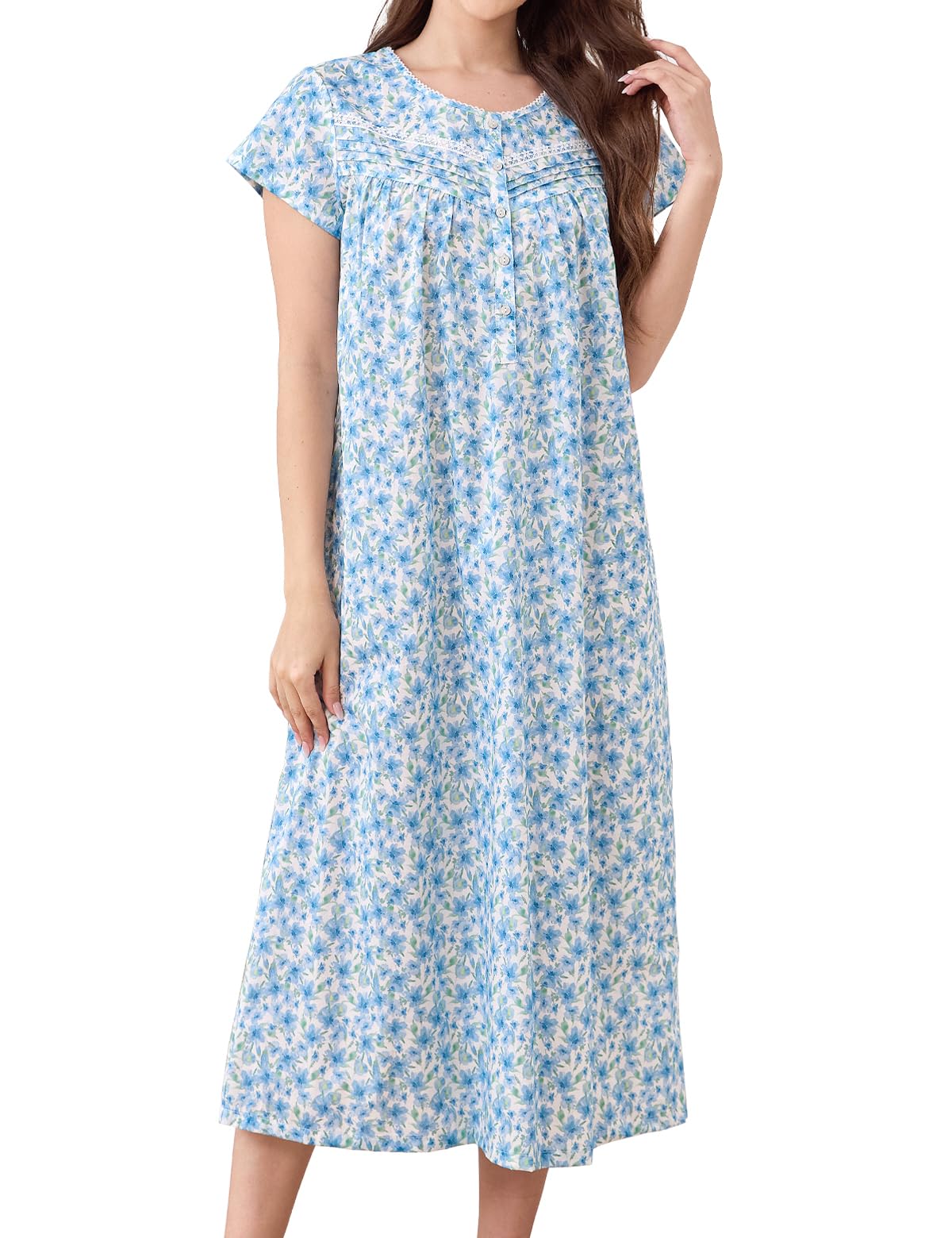 IZZY + TOBY Cotton Nightgowns for Women Long Lightweight Short Sleeves Ladies Soft Nightdress Pajamas|Clothing
