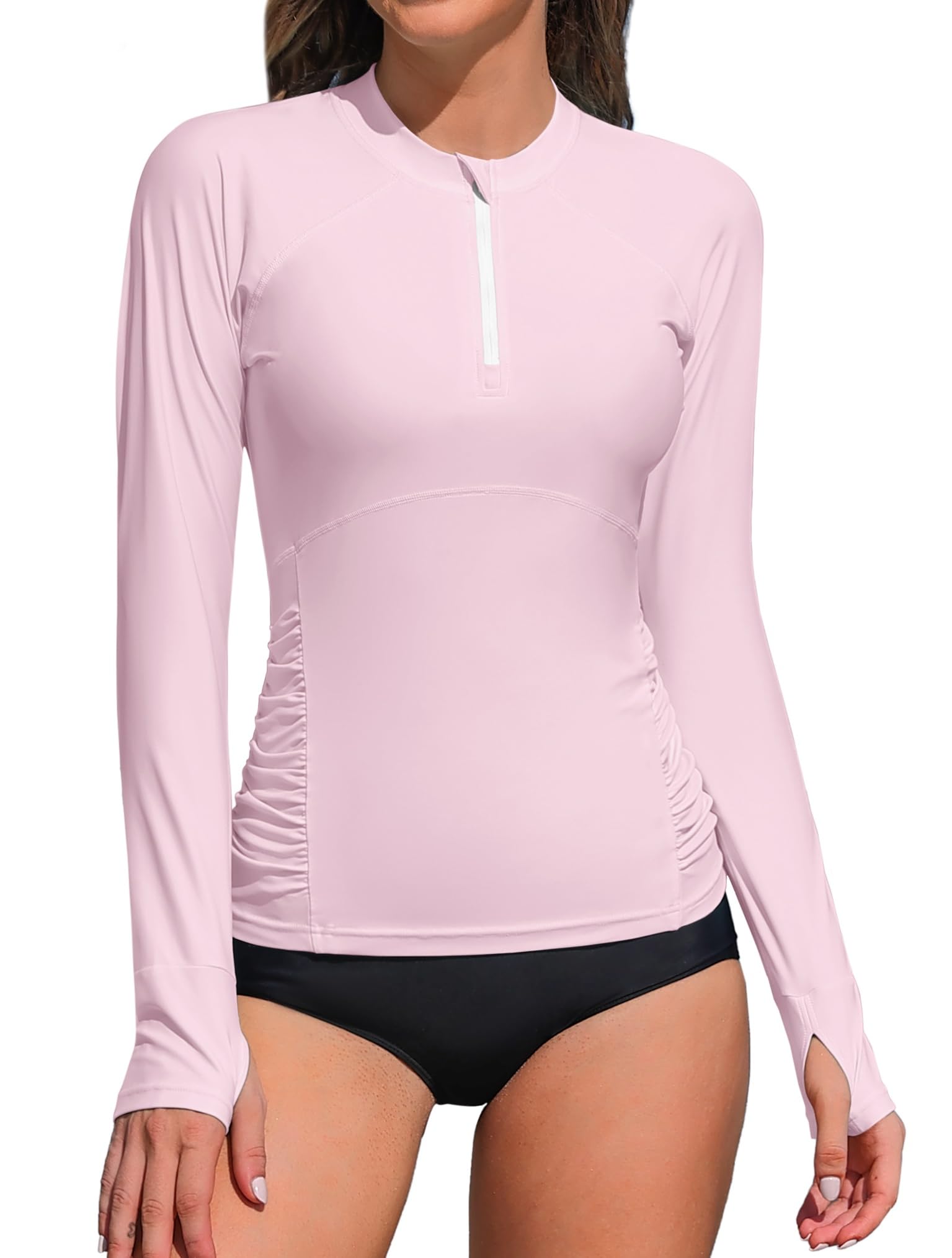 ATTRACO Women Rash Guard Long Sleeve Swimsuits UV UPF 50+ Zipper Swim Shirt Quick Dry Sun Shirts|Clothing