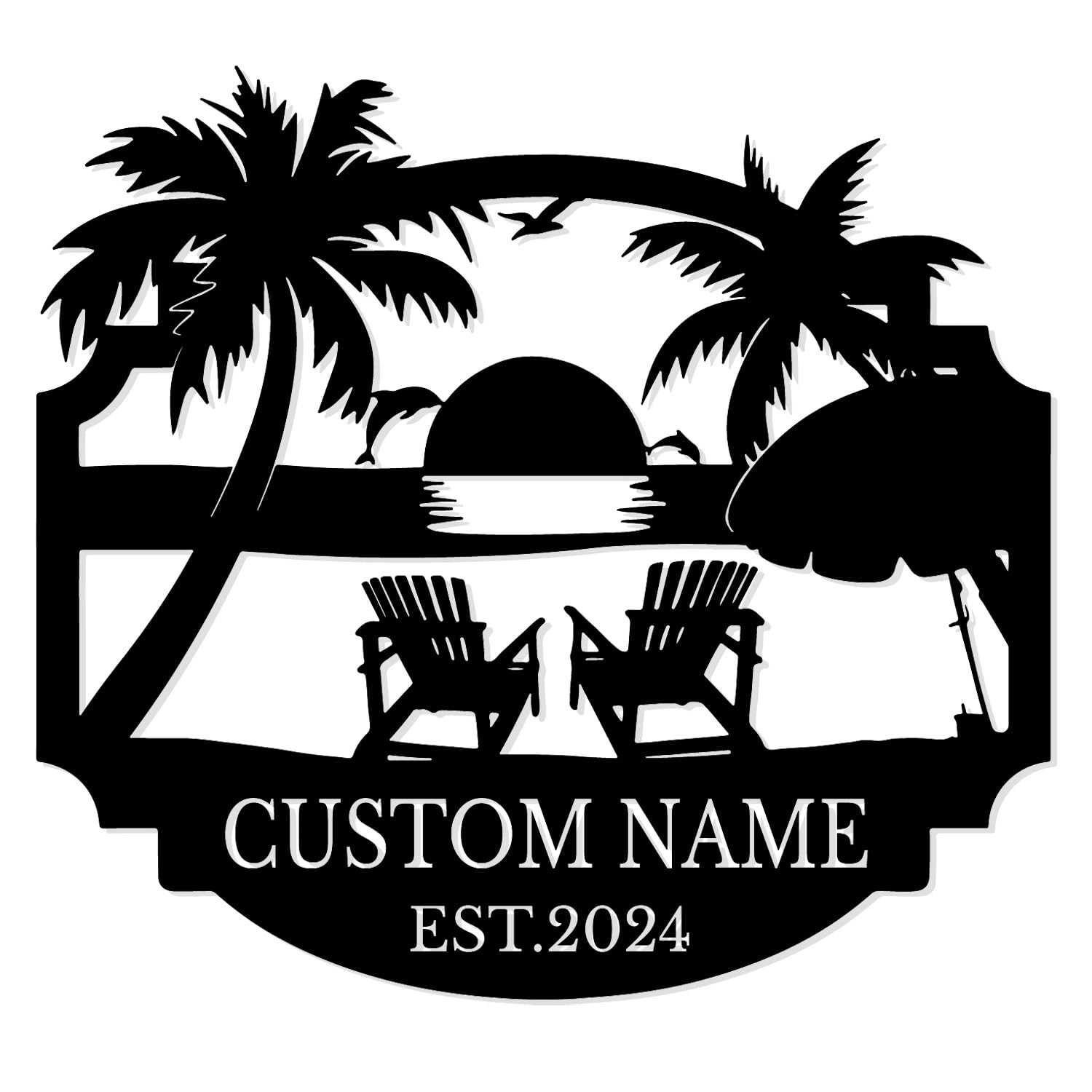 Custom Palm Tree Wall Art, Tropical Personalized Last Name Sign, Monogram For Home Decor, Lake Beach House Decorate for Wedding Gifts (Style-1)|Home & Garden