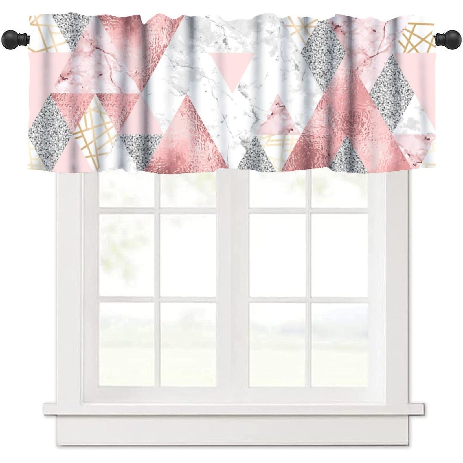 Pink Marble Valance, Abstract Geometric Gold Silver Glitter Lines Modern Luxury Triangles Print Blackout Window Valance for Kitchen Cafe Girls Bedroom|Home & Garden