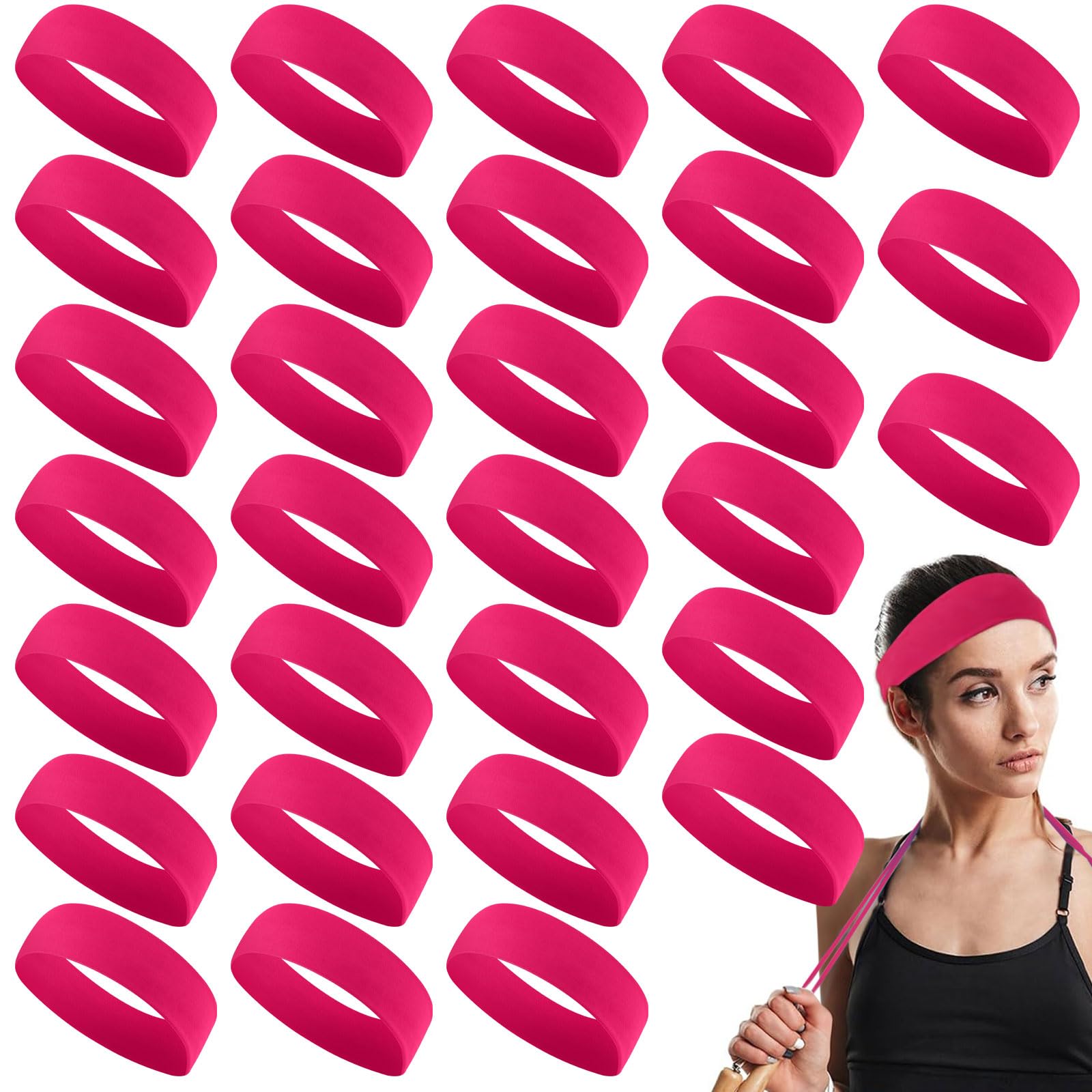 Hotop 30 Pcs Sport Headbands for Women Non Slip Stretchy Soft Fabric Elastic Sweatbands Bulk for Yoga DIY Team Gifts (Rose Red)|Health & Beauty
