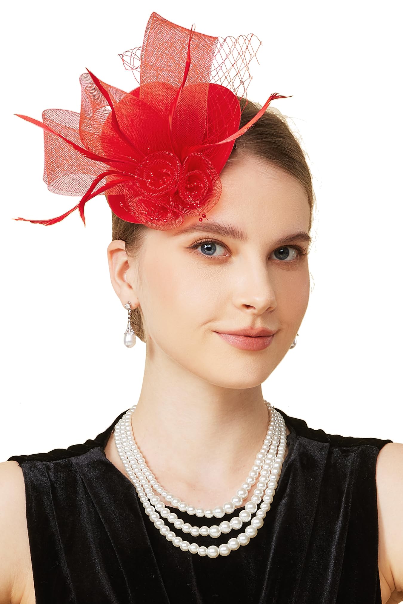 BABEYOND Fascinators Hats for Women - Mini Top Tea Party Hat Veil Feather Kentucky Fascinator Flower Mesh Hat Hair Clip|Clothing