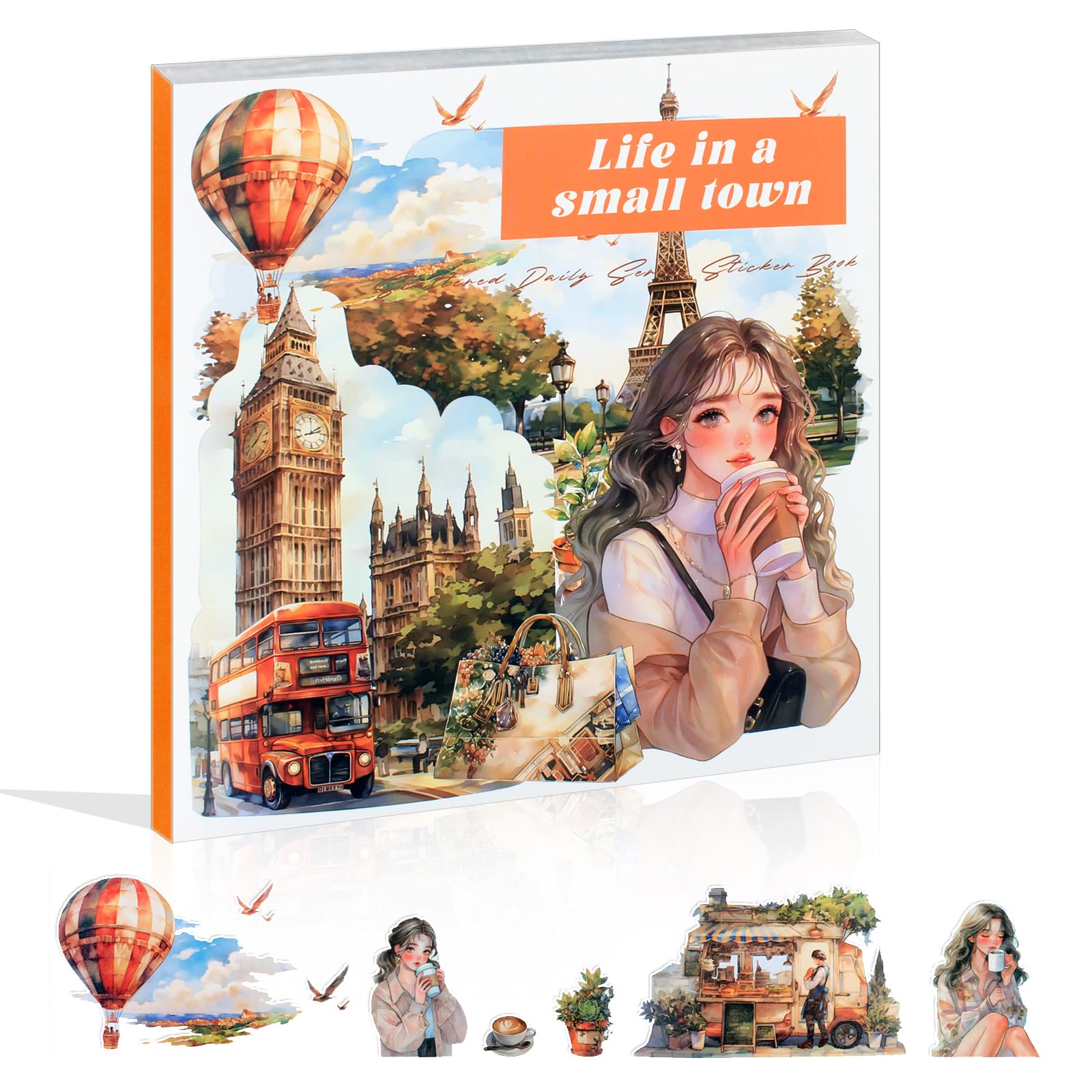 Dwpetzo 50 Sheets Precut Washi Sticker Book for Journaling, Watercolor Town Travel Landscape Stickers for Junk Journal Supplies, Scrapbooking, Collage|Home & Garden
