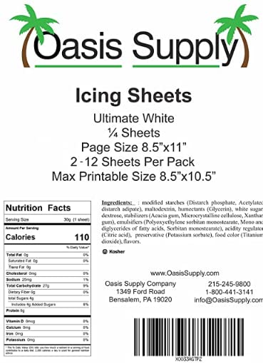 Oasis Supply Ultra Premium, Pliable, Non Cracking Icings Sheets, White (8.5" x 11.5", 24), Made in the USA|Food Items