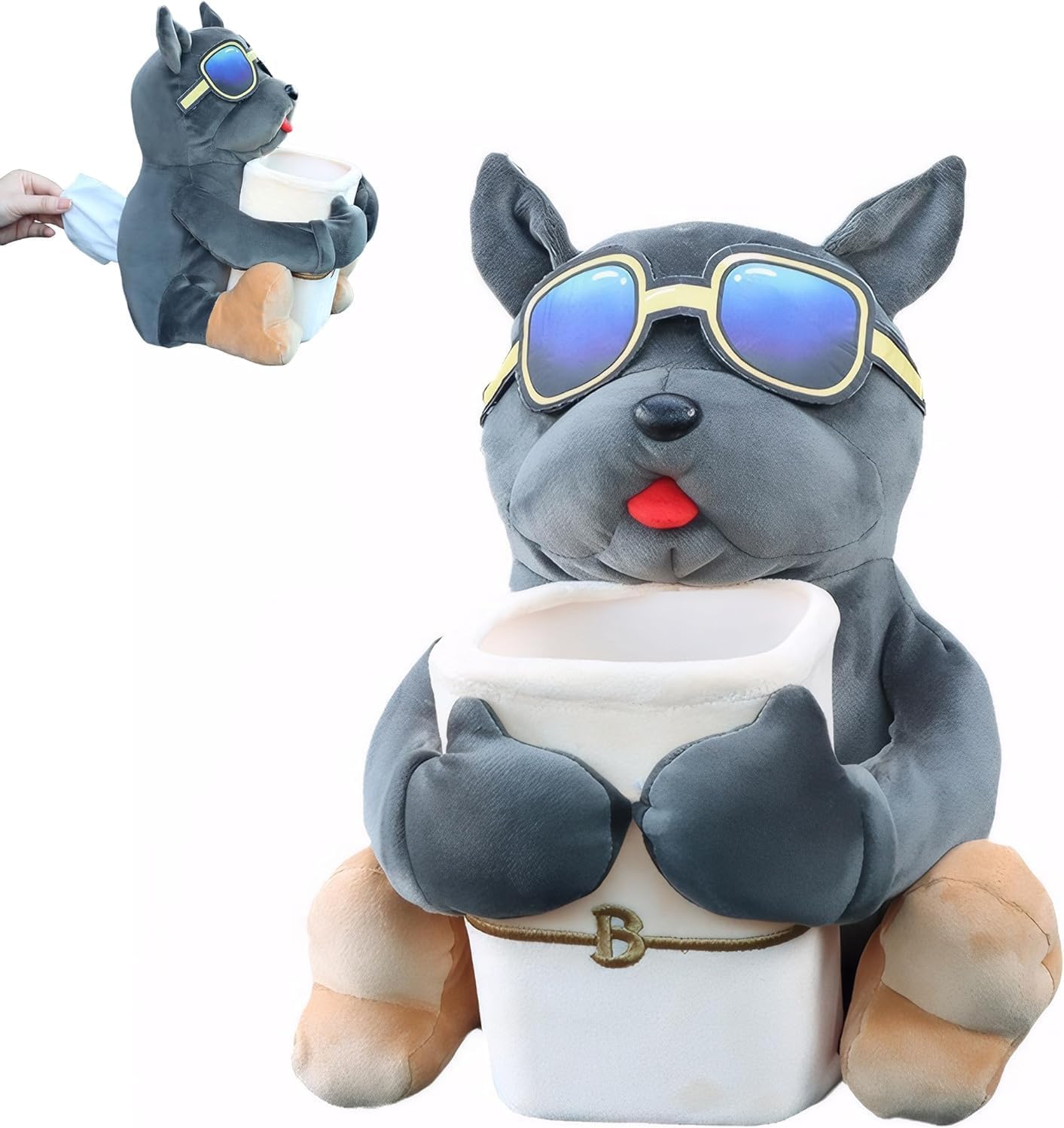 YJPPDD Multifunctional Deluxe Trash Can and Storage Box, Cute Tissue Box, Creative Animal Cartoon Decorative Organizer for Car and Home, Dog, Grey|Home & Garden