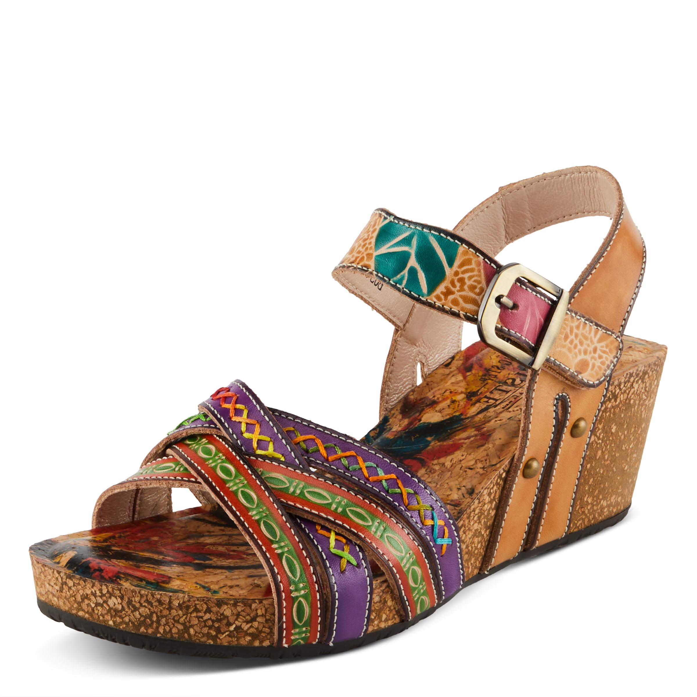 Spring Step L'Artiste Women's BOSQUET - Hand-Painted Wedge Sandals for Artistic Comfort|Shoes