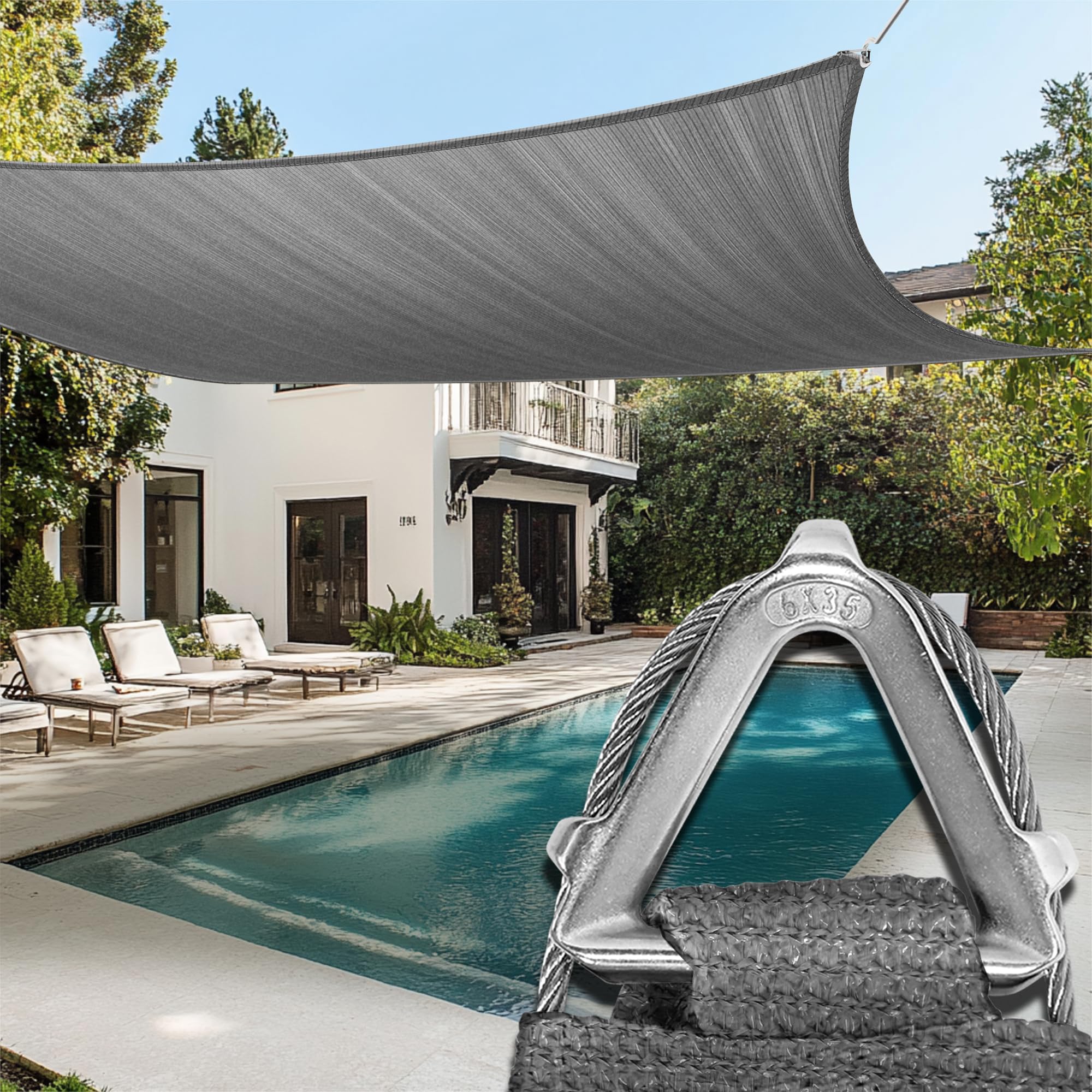 Amgo Heavy Duty 18' x 18' Grey Square Sun Shade Sail, Commercial Grade UPF50 Canopy, Reinforced Corners & Edges, 260 GSM Fabric Heavy Duty -3 Years|Lawn & Garden