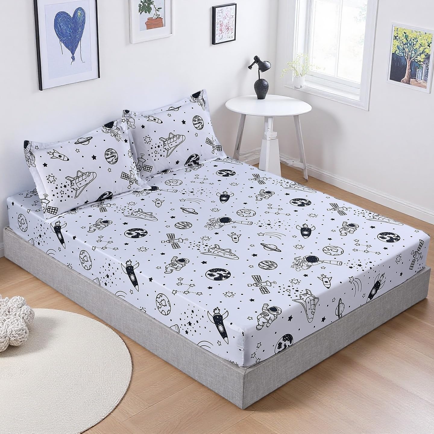 MAG 3 Pcs Space Sheets Full,White Based Galaxy Planets Sheet Set, Super Soft Microfiber, for Kids Teens Boys Girls and Space Galaxy Lovers with 1|Home & Garden