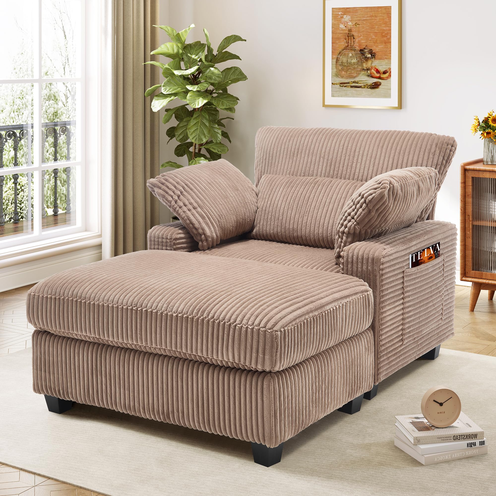 WorthFurni Indoor Chaise Lounge Chair, 57.52 “D Recliner, Corduroy Fabric + Upholstered Comfort Sofa for Living Room, Bedroom, Office(Brown)|Furniture