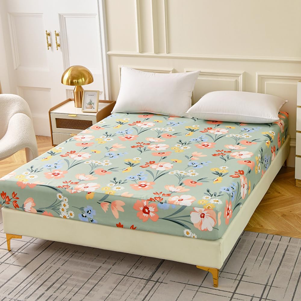 Mengersi Fitted Sheet Queen Size,Queen Fitted Sheet -Soft Lightweight Microfiber Deep Pocket Fitted Bottom Sheets (Queen, Flowers)|Home & Garden