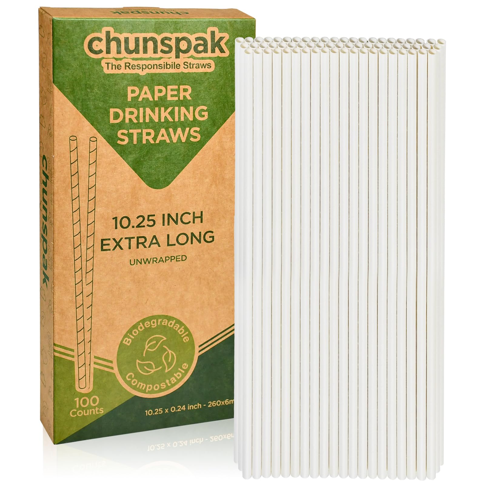 10 Inch Long Paper Drinking Straws, 0.24" Diameter - White, 100 counts|Health & Beauty