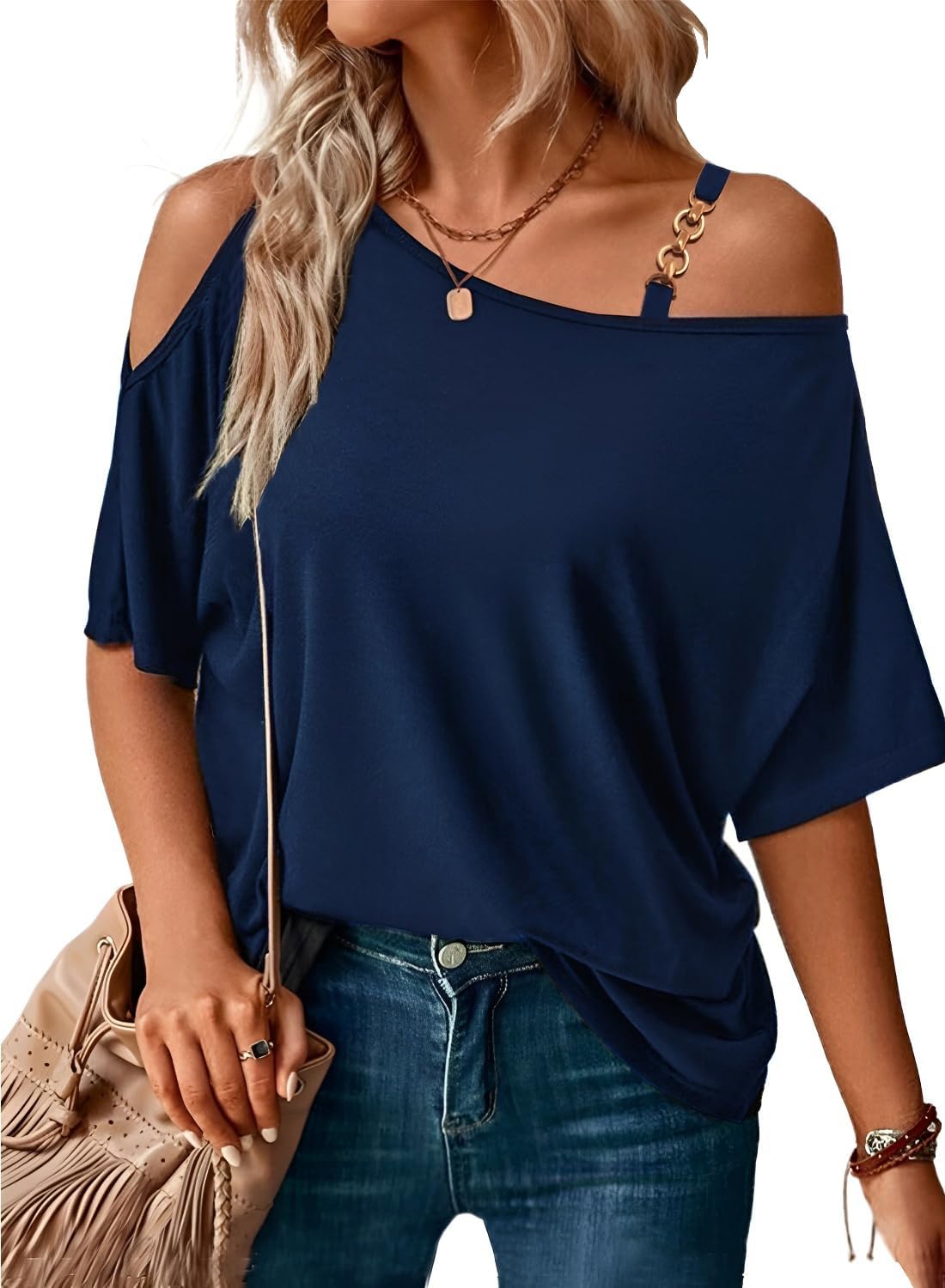 LEIYEE Womens Summer Black Cold Off Shoulder Tops 2025 Sexy Casual Cute Short Sleeve Loose Fit T Shirts Blouse|Clothing