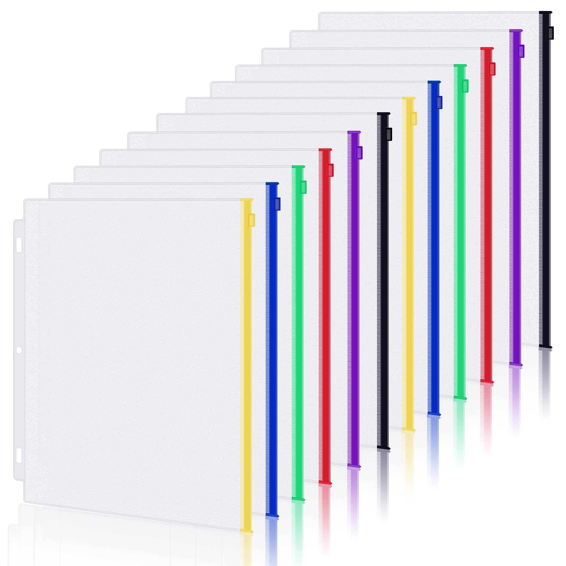 Antner 12 Pack Letter Size Binder Pockets 3 Ring Binder Multicolor Zipper Pouches Document Organizer, PVC 3-Hole Loose Leaf File Folders Insert|Office Supplies