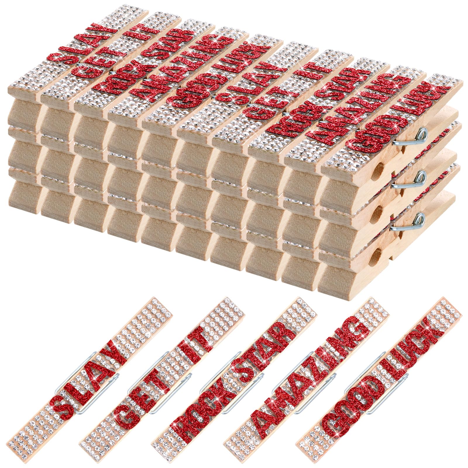 Ecation 30 Pcs Cheerleading Rhinestone Volleyball Spirit Clips Competition Cheer Pins Clothespins Cheer Charms for Clothes Pins Gifts Sports|Jewelry