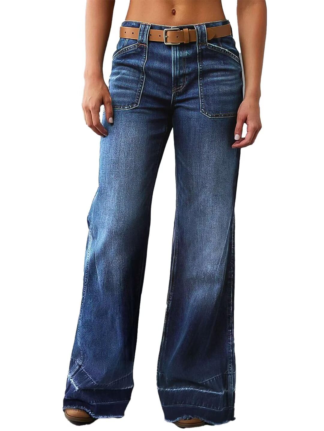 Flamingals Wide Straight Leg Mid Rise Baggy Pocket Denim Jeans Without Belt|Clothing