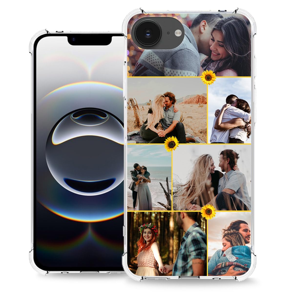 Personalized Transparent Case for Apple iPhone 16E/SE 4th Phone Photo Collage,Custom Imprint Multi-Pictures Name Monogram,Lightweight Clear Corner|Telephony