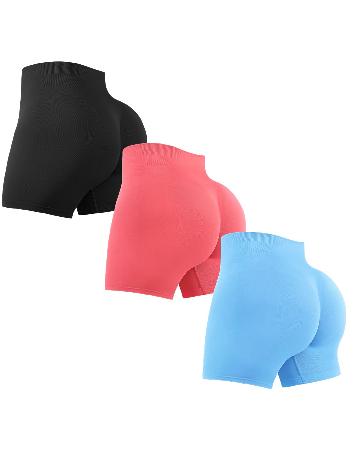 LISSMOMO Workout Shorts Women 3 Pack Gym Biker Seamless Scrunch Butt Lifting High Waisted Tummy Control Booty Yoga Shorts|Clothing