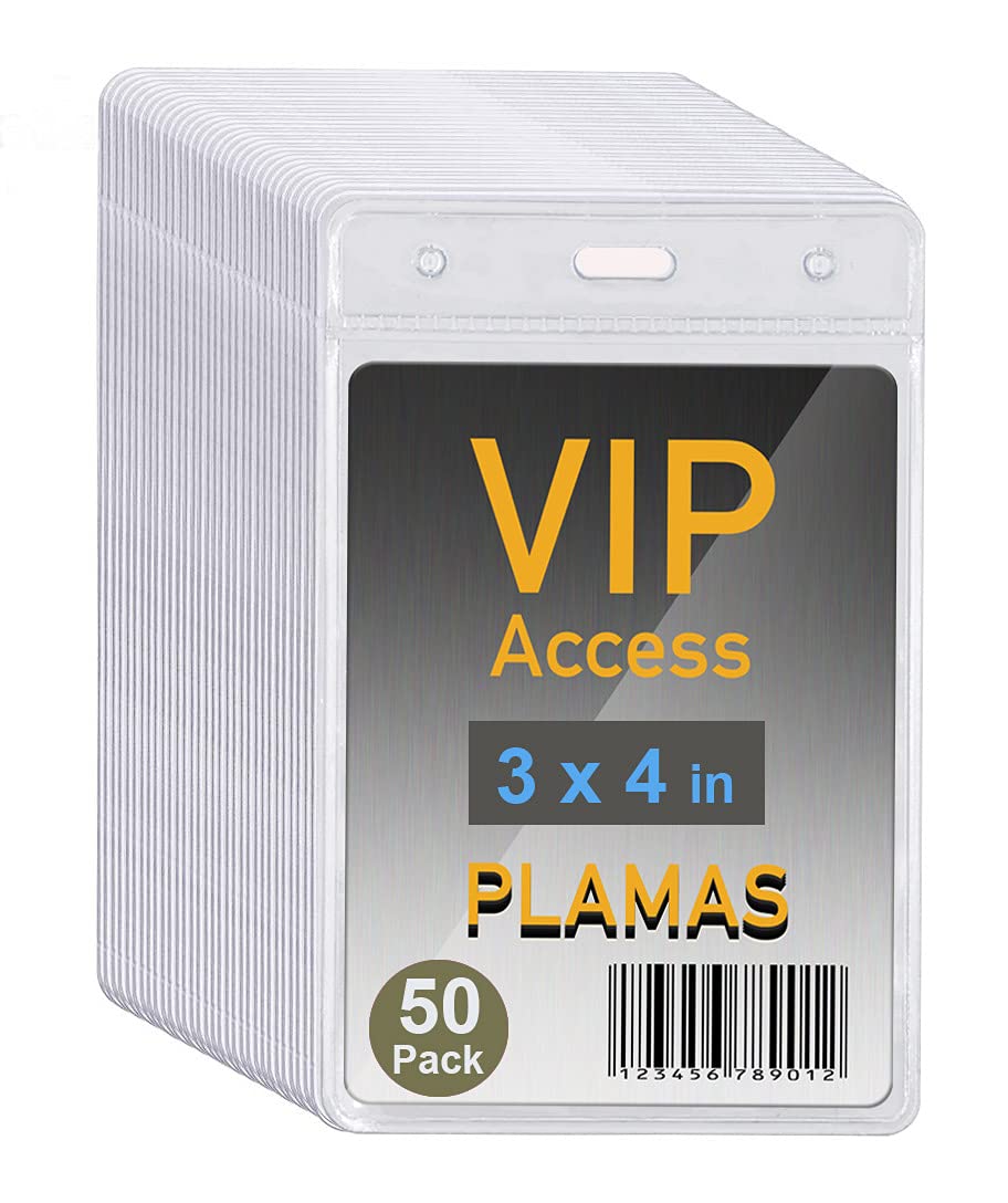 WTQ 50Pcs Zipperless ID Badge Holders, Fits 3"x4" Inserts, Quick Open Easy Load Badge Sleeves, Non-sealable, Clear Vinyl Plastic Pouch for ID Card,|Office Supplies