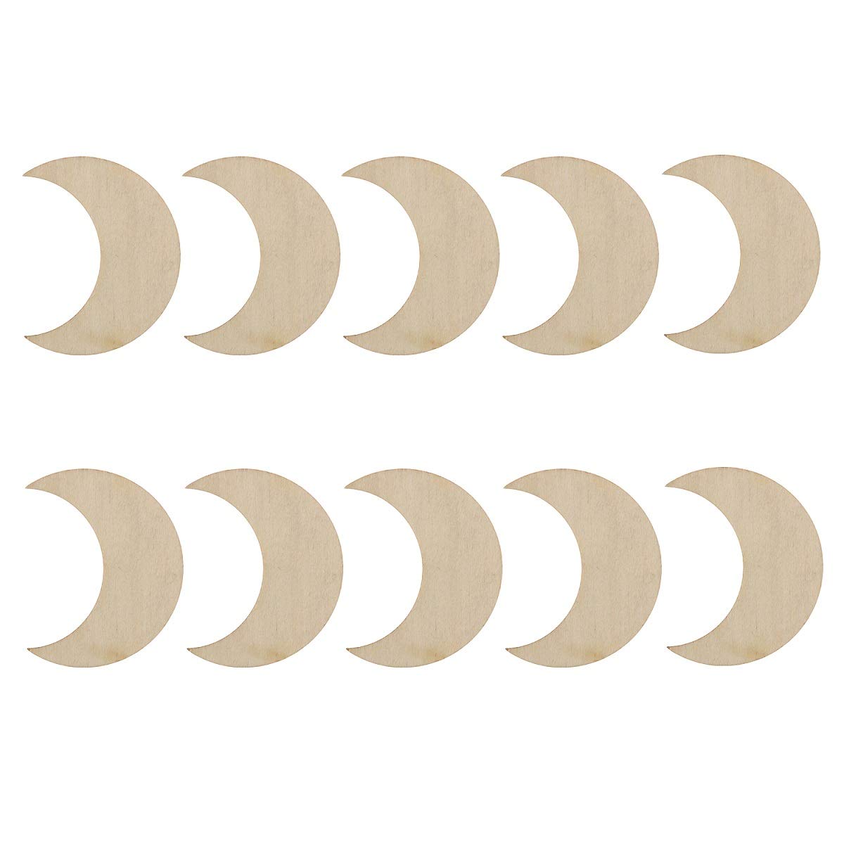 JANOU 20pcs Moon Shaped Wood Cutouts DIY Craft Embellishments Moon Unfinished Wood Ornaments Decoration|Home & Garden