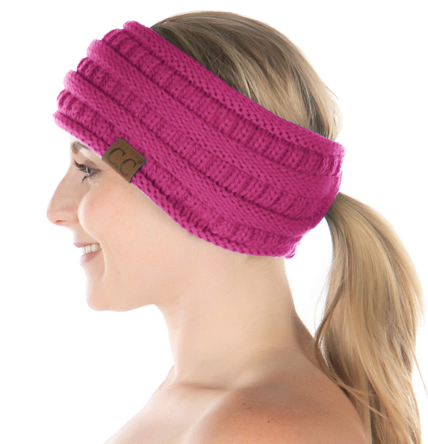 Funky Junque Ponytail Headwrap Ear Warmer Winter Fall Women's Running Headband - Pink Azalea|Clothing