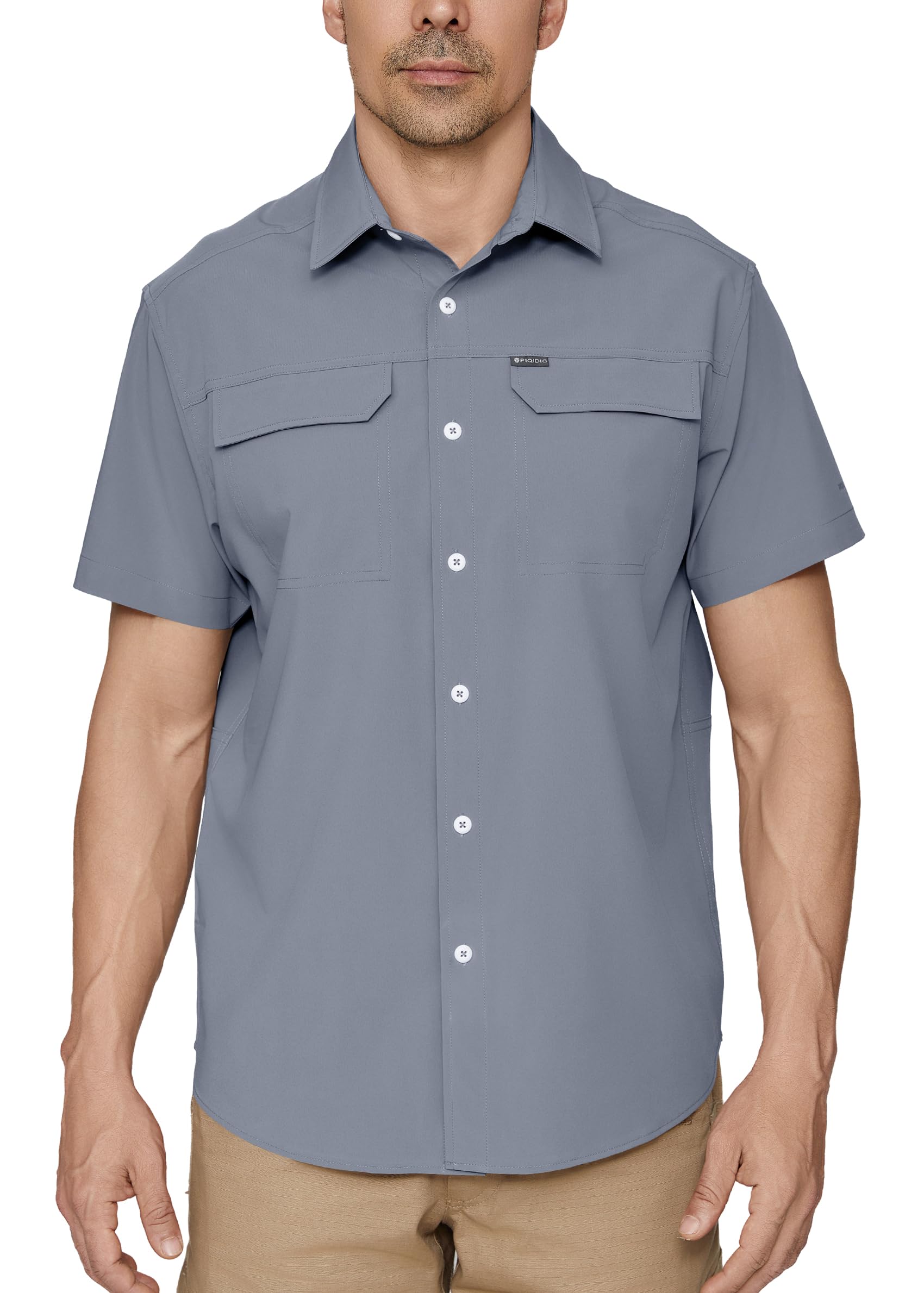 PIQIDIG Men's UPF 50+ Sun Protection Shirt Short Sleeve Hiking Fishing Shirt Quick Dry for Safari Travel Button Down Shirts|Clothing