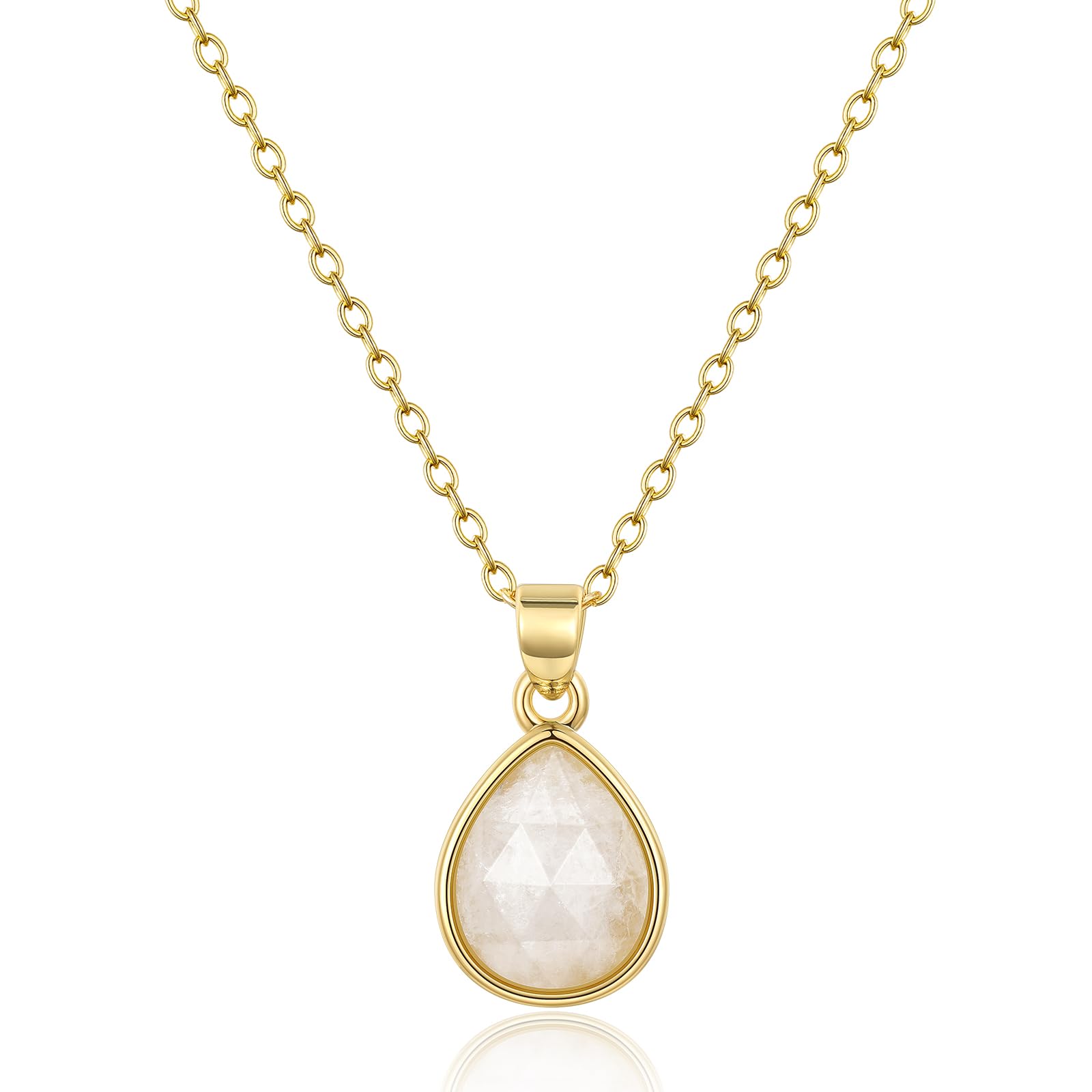 KissYan Gemstone Necklace for Women, 14K Gold Plated Crystal Teardrop Pendant Choker Natural Healing Stone Jewelry Gift|Jewelry