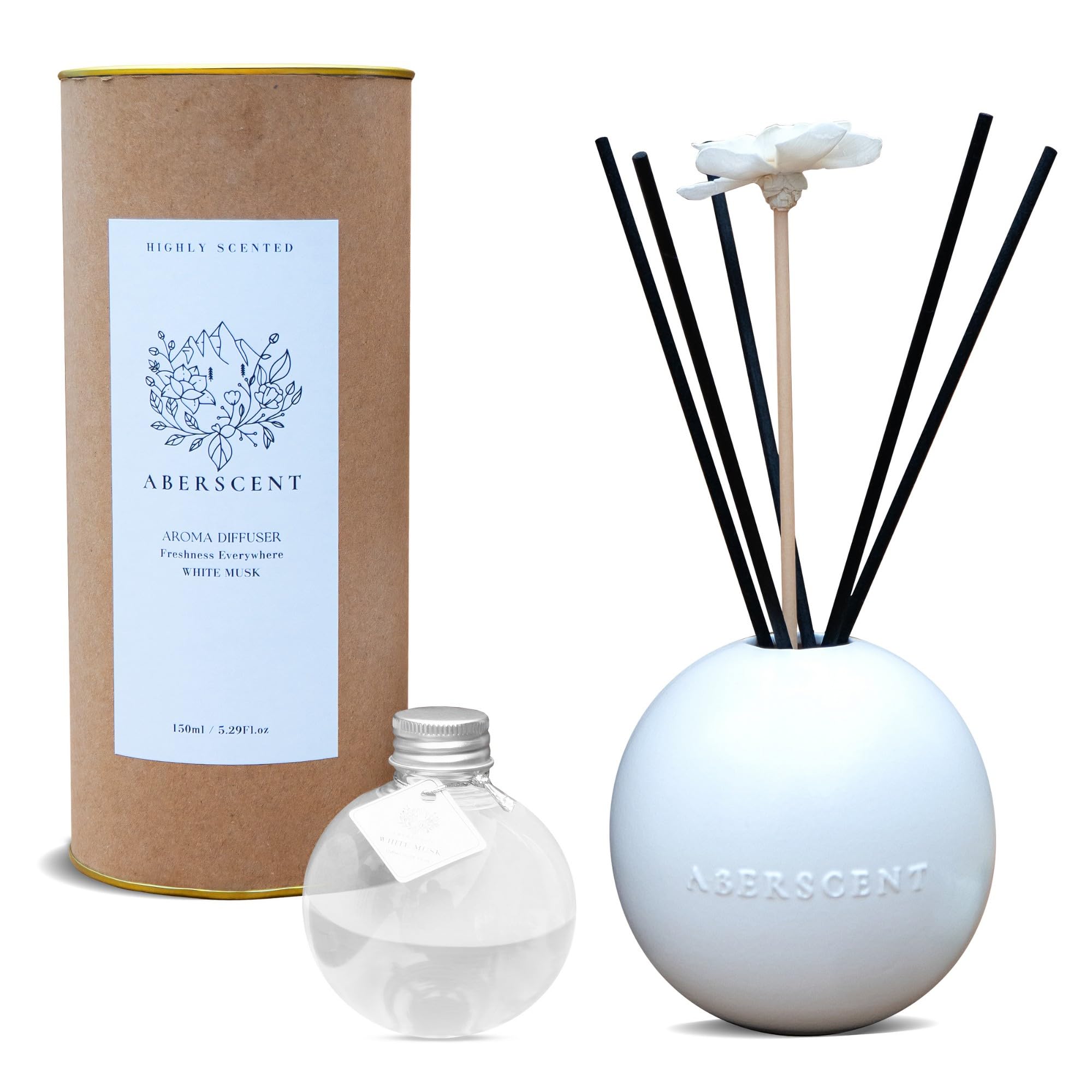 Aberscent Luxury Reed Diffuser Set – White Musk 5.07oz – Long-Lasting Home Fragrance for Bedroom, Office | Premium Ceramic Base, Reusable & Refillable|Home & Garden
