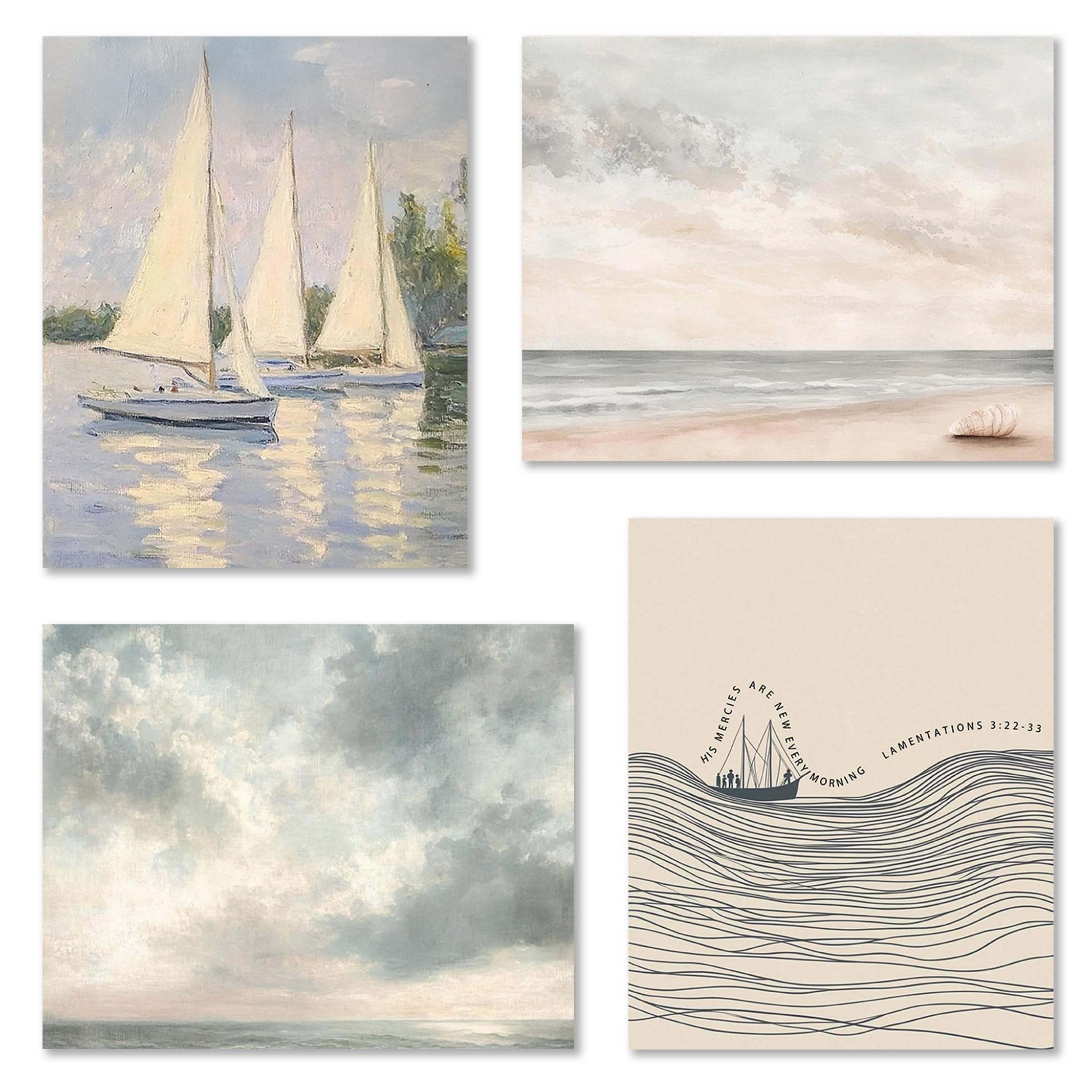 JUIOEIU Vintage Nautical Sailboat Sailing Wall Art Prints Set of 4, Lake Beach House Decor, Sailboat Decor, Coastal Beach Nautical Christian Bible|Home & Garden