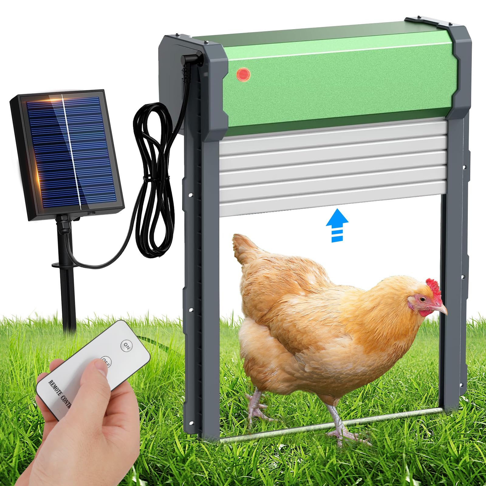 Automatic Chicken Coop Door, Solar Powered Door Opener with Timer & Light Sensor, 4 Modes IP65 External 2000mAh Power Supply Connection with Remote|Pet Supplies