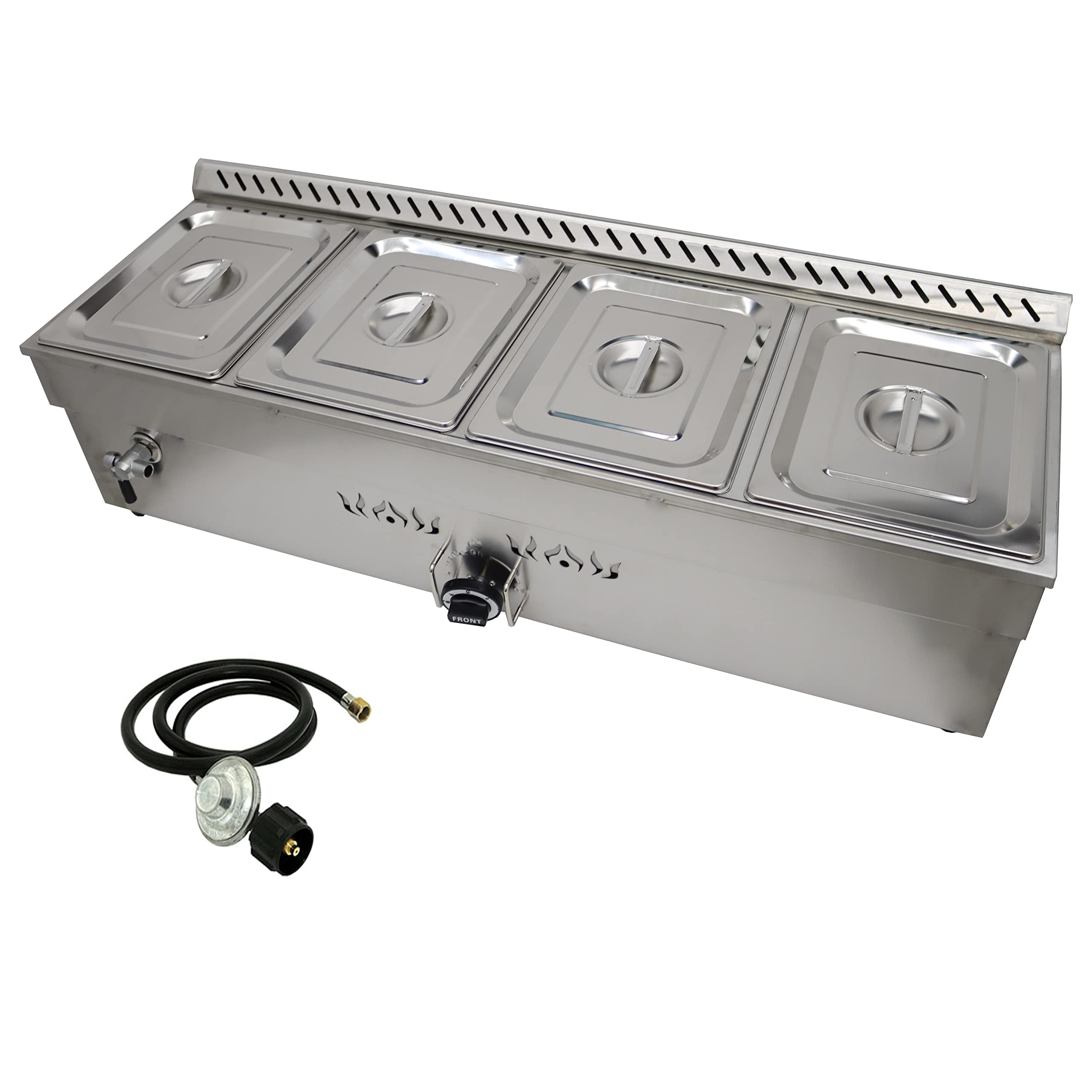 TECHTONGDA Propane Gas Food Soup Warmer Stove Bain Marie Commercial Canteen Buffet Steam Heater with Regulator Valve 12''x8.7''x4'' Pan 4 Pan Single|Kitchen & Dining