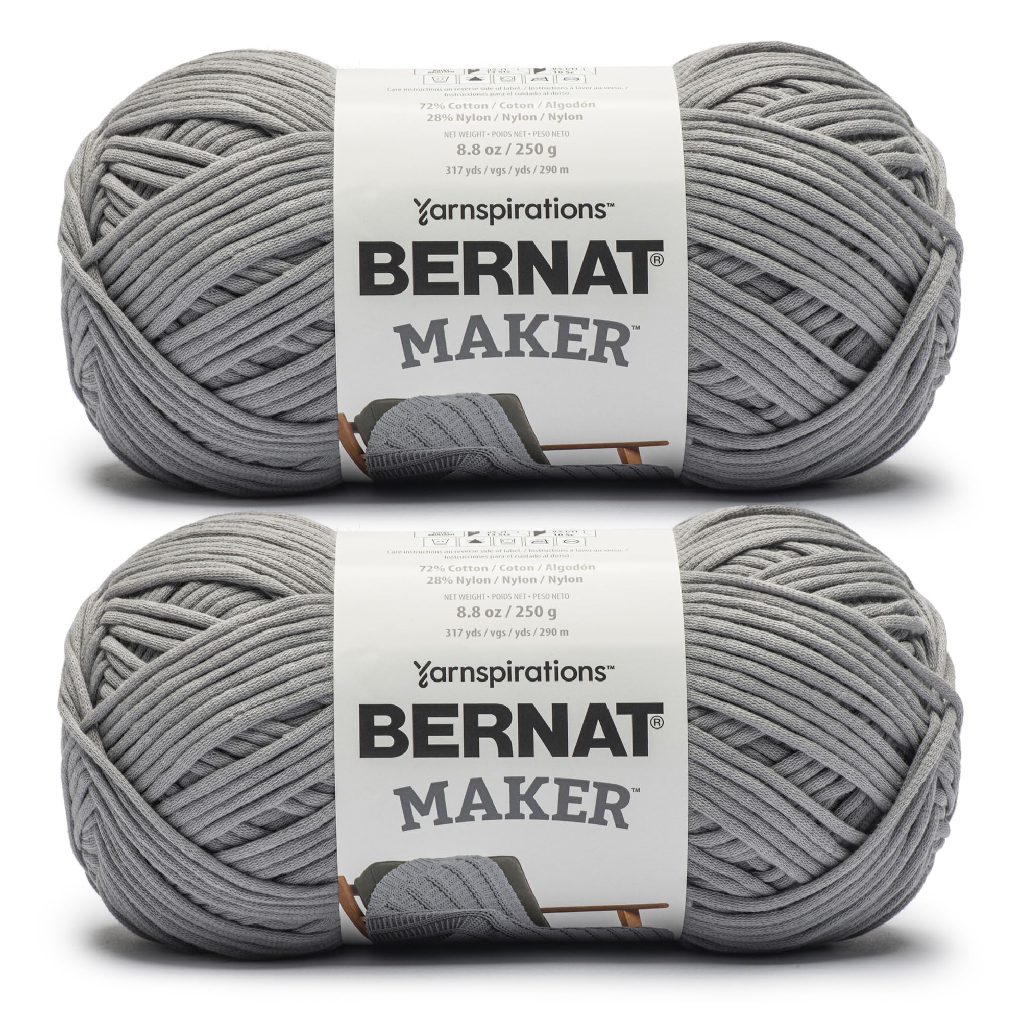 Bernat Maker Gray Yarn - 2 Pack of 250g/8.8oz - 72% Cotton 28% Nylon - #5 Bulky - 290m/317Yards - for Knitting, Crochet and Amigurumi|Home & Garden