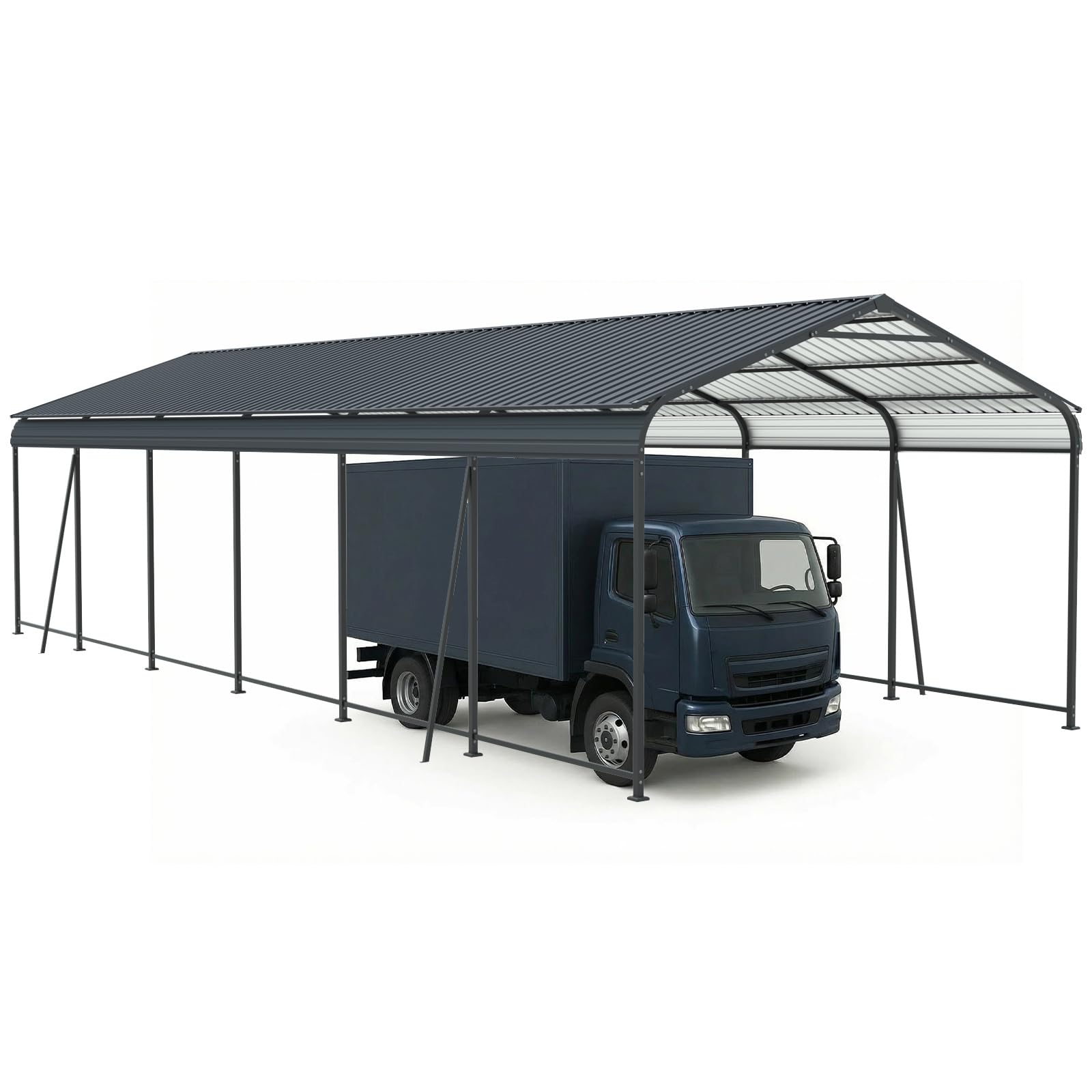 12 X 32 FT Heavy Duty Metal Carport, Galvanized Steel Roof & Frame with 4 Reinforced Supports, Large Outdoor Garage Shelter for Cars, Trucks, RVs,|Lawn & Garden