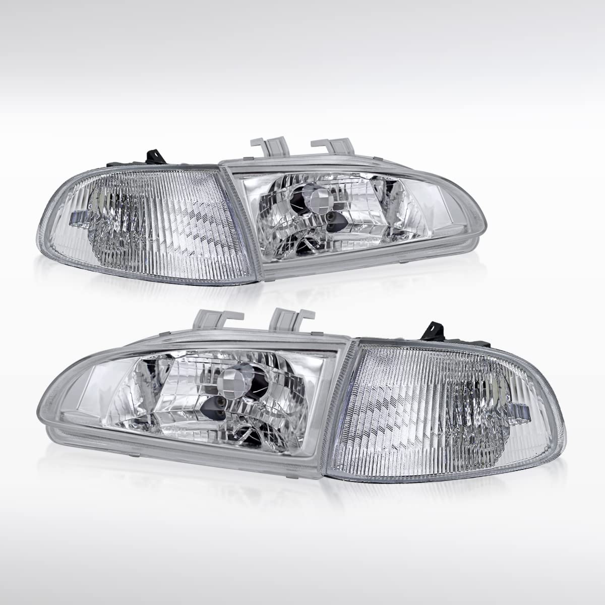 Autozensation Compatible with 1992-1995 Honda Civic 2/3Dr Crystal Chrome Headlights & Clear Corner Lights|Vehicles & Parts