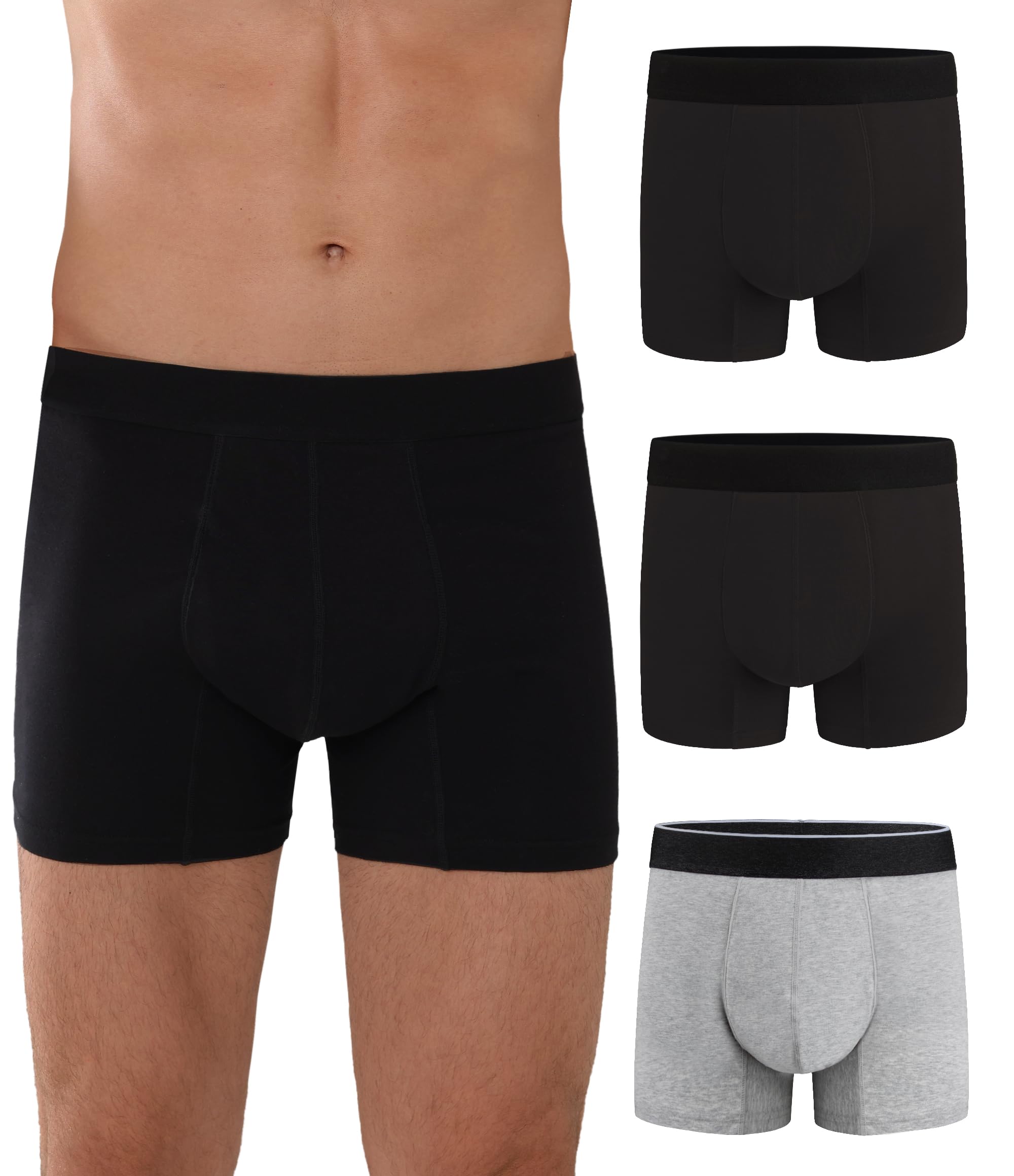 IRISMORII Mens Incontinence Protective Underwear Washable Adult Leak Proof Boxer Briefs with 60 ml Absorbency Trunk 3 Pack (Black-Black-Gray, L)|Health & Beauty