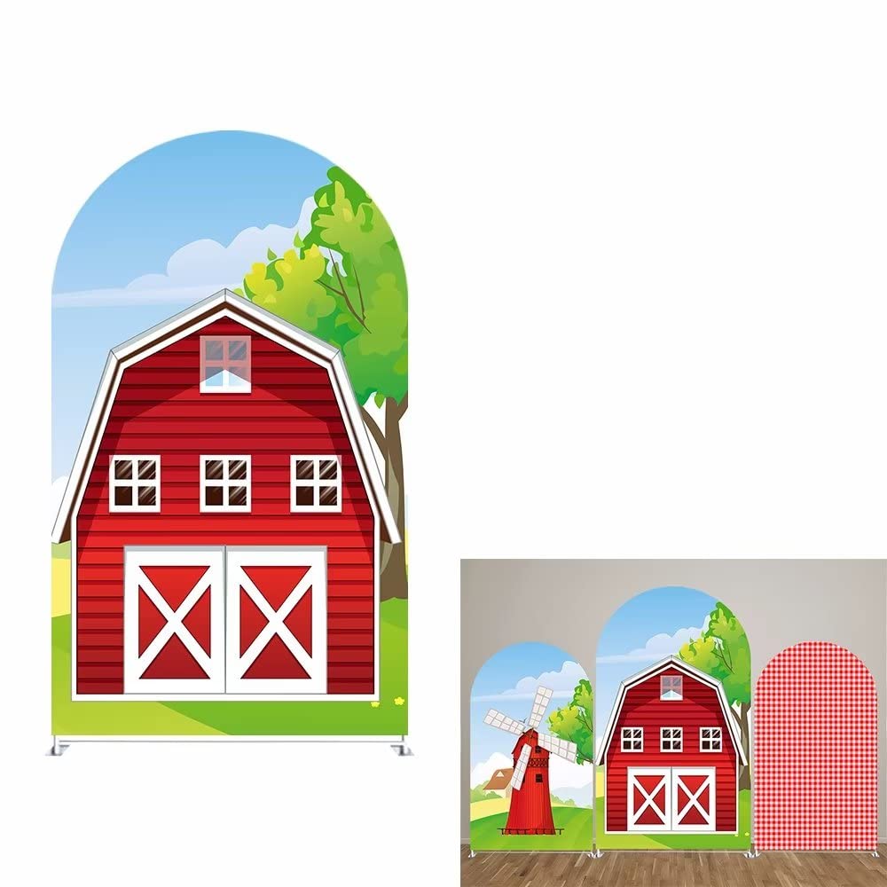 HUAYI Red Farm Barn Arch Backdrop Cover Kids Red Farm Birthday Chiara Backdrops Decorations Arched Wall Covers Stands Display Props Farm Party Banner|Cameras & Optics