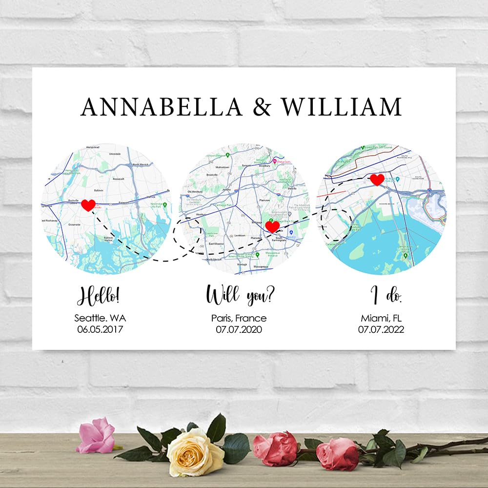 Personalized Couple Map Poster Canvas, Customized Couple Map, Hello, Will You, I Do Map, Where It All Began Map, Wedding Anniversary Engagement|Home & Garden