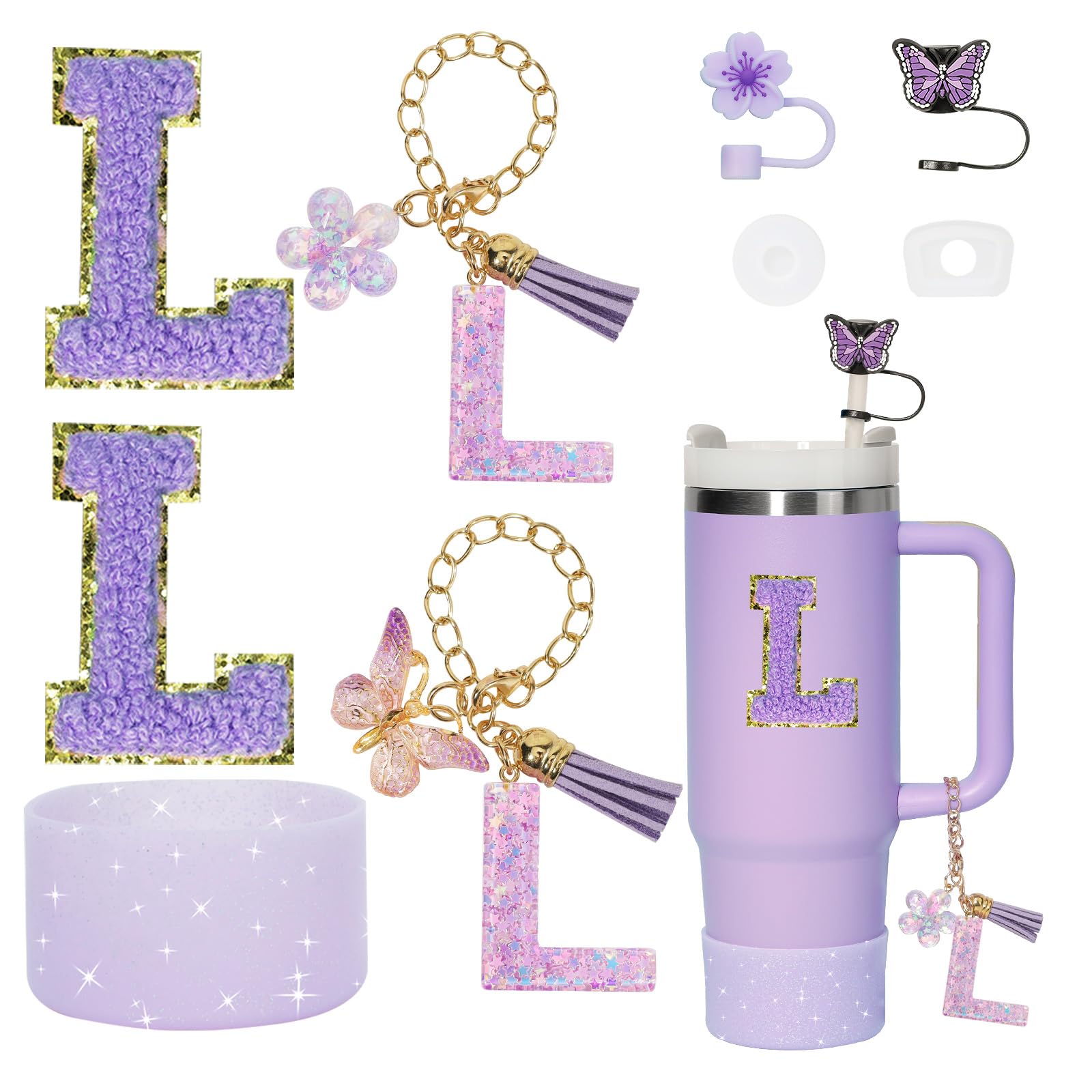 Liangang Stanley Cup Accessories Set, Compatible with 30oz & 40oz, Includes Straw Cover, Boot, Spill Proof Stopper, Handle Charm, Sticker Letter (|Kitchen & Dining