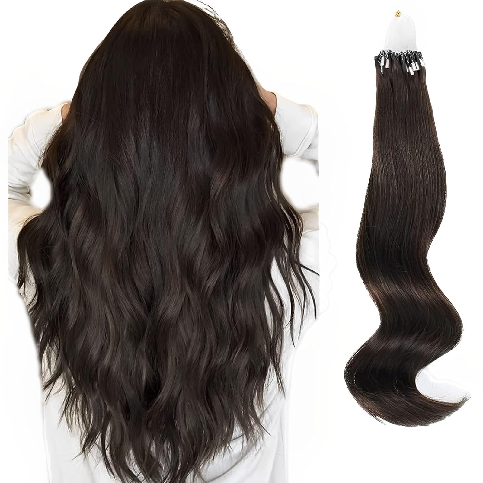 ABH AMAZINGBEAUTY HAIR Micro Loop Extensions Darkest Brown Microbead Hair Extensions With Fish Wire Micro Ring Hair Extensions Human Hair Brown Real|Health & Beauty