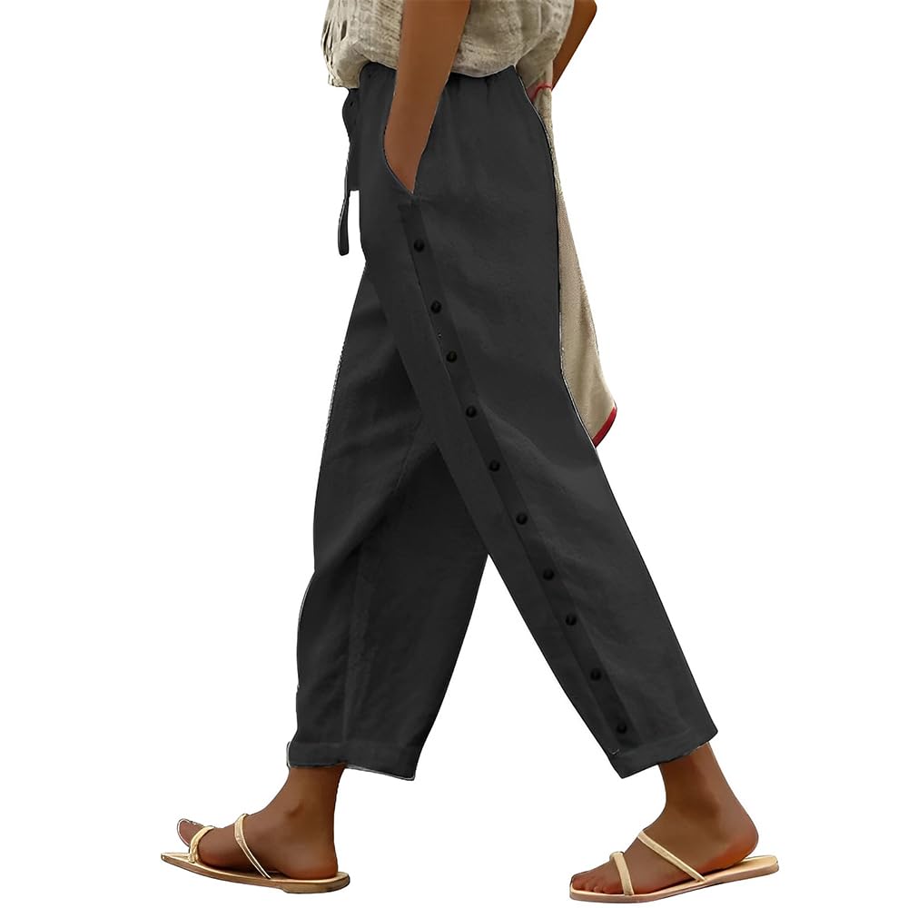 TIAFORD Women's Summer Casual Linen Pants Elastic Waist Relaxed Fit Straight Leg Crop Pants Beach Trousers with Pockets|Clothing