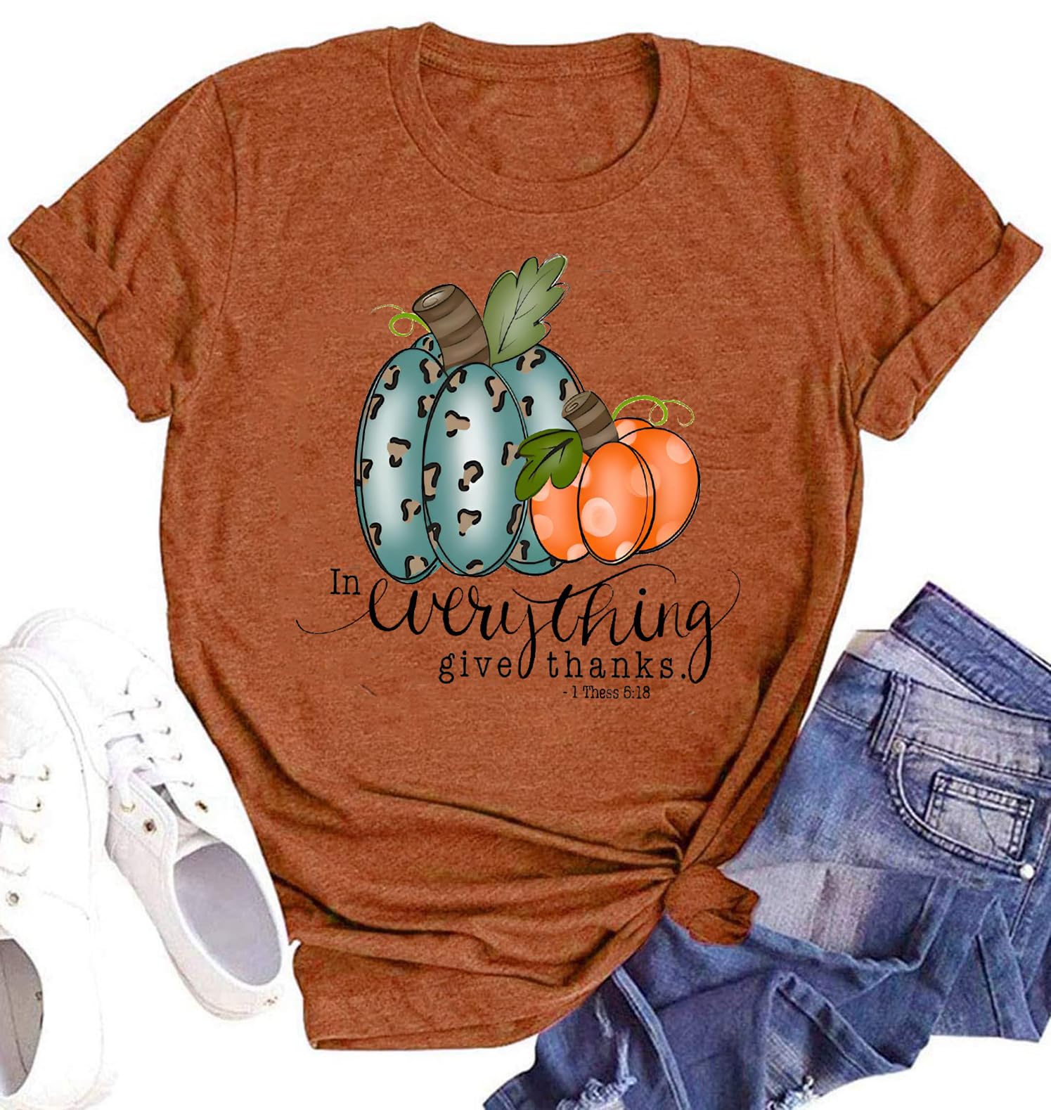 Women Thanksgiving Shirts Funny Leopard Pumpkin Graphic Print Fall T Shirts|Clothing