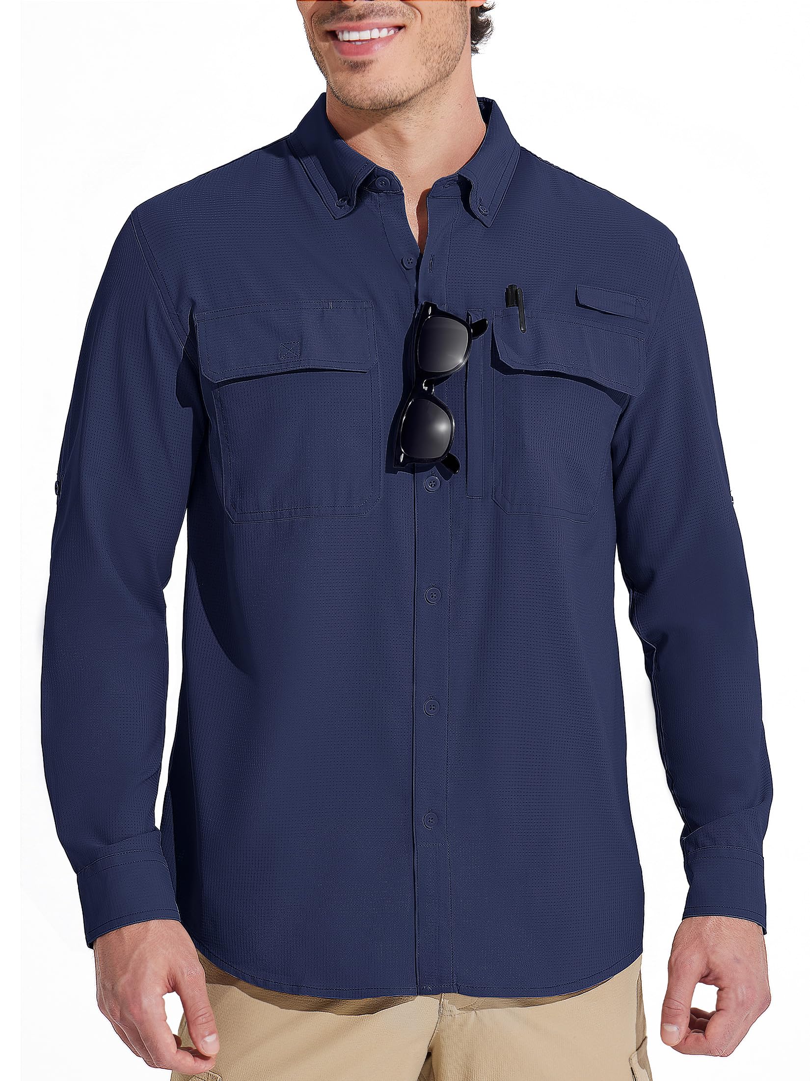 MAGCOMSEN Men's Sun Protection Fishing Shirts Long Sleeve UPF 50+ Quick Dry Cooling Button Down Shirt for Hiking Safari|Clothing