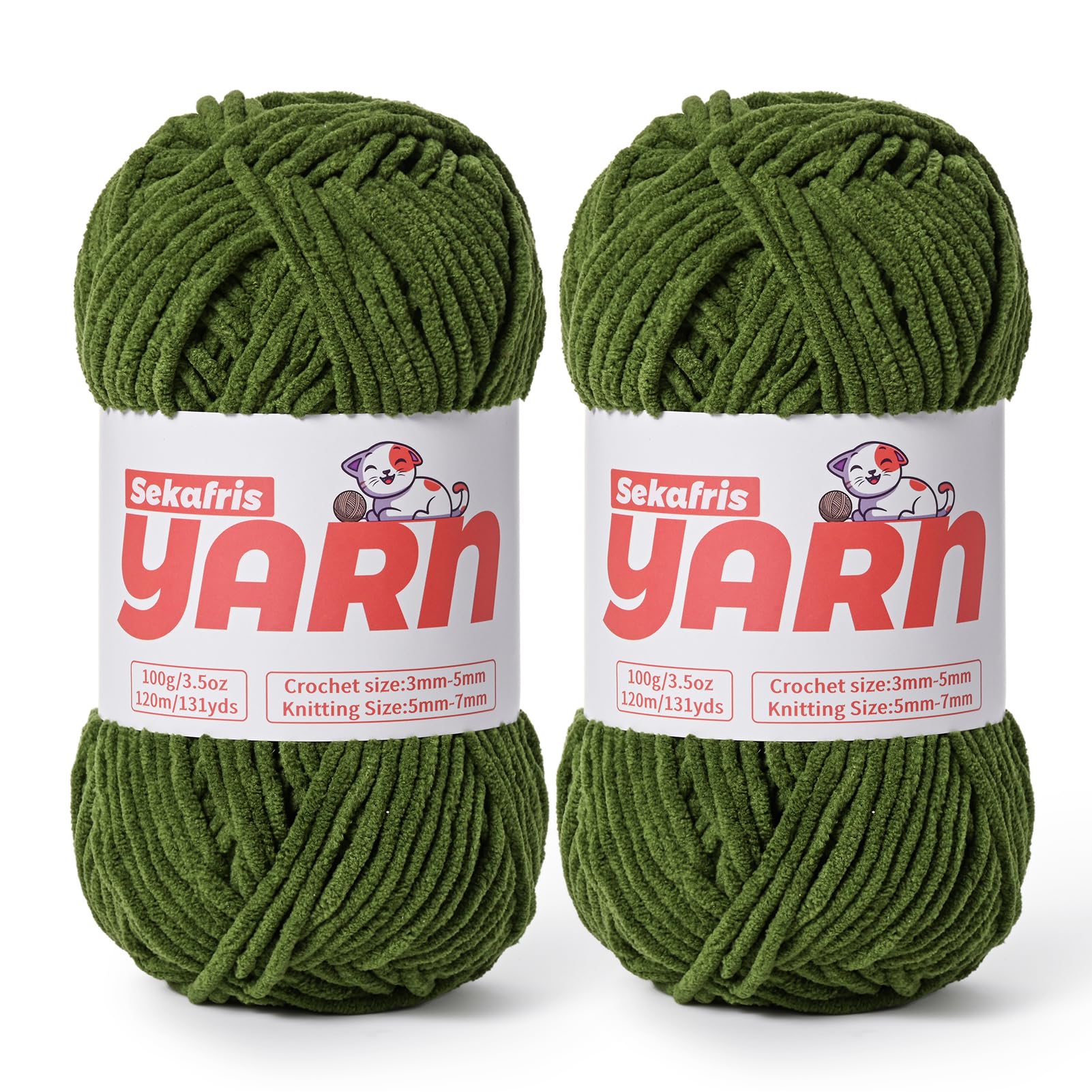 Plush Chunky Chenille Yarn for Crocheting, Soft Fluffy Velvet Yarn for Crocheting Amigurumi, Fuzzy Baby Blanket Knitting 200g/262yds Bulky(2 Pine|Home & Garden