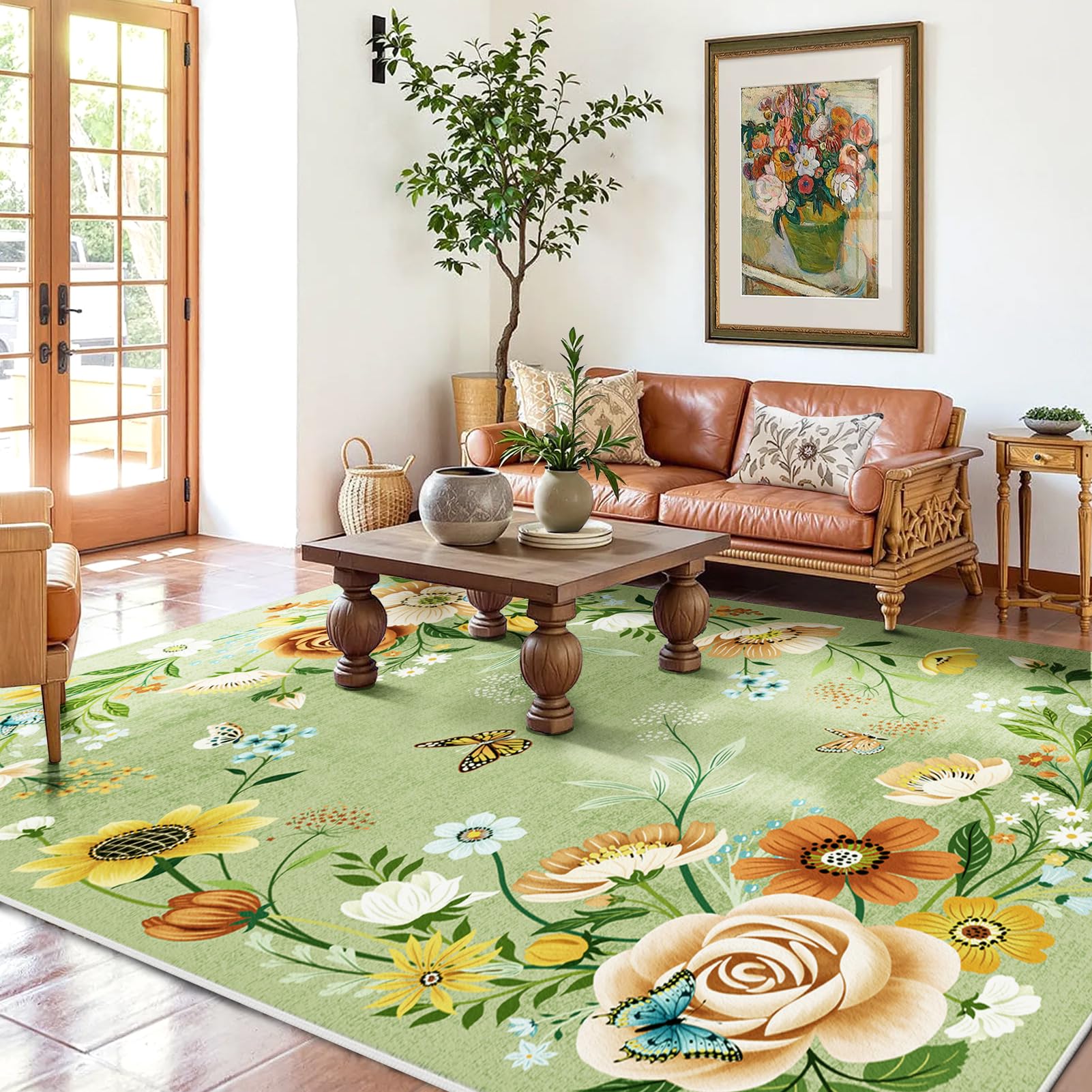 Truqual 3x5 Rug for Bedroom Washable Rug Non Slip, Girl Rug, Low Pile Boho Floral Area Rug Carpet for Living Room,Bedside, Kids Room, Office, Light|Furniture